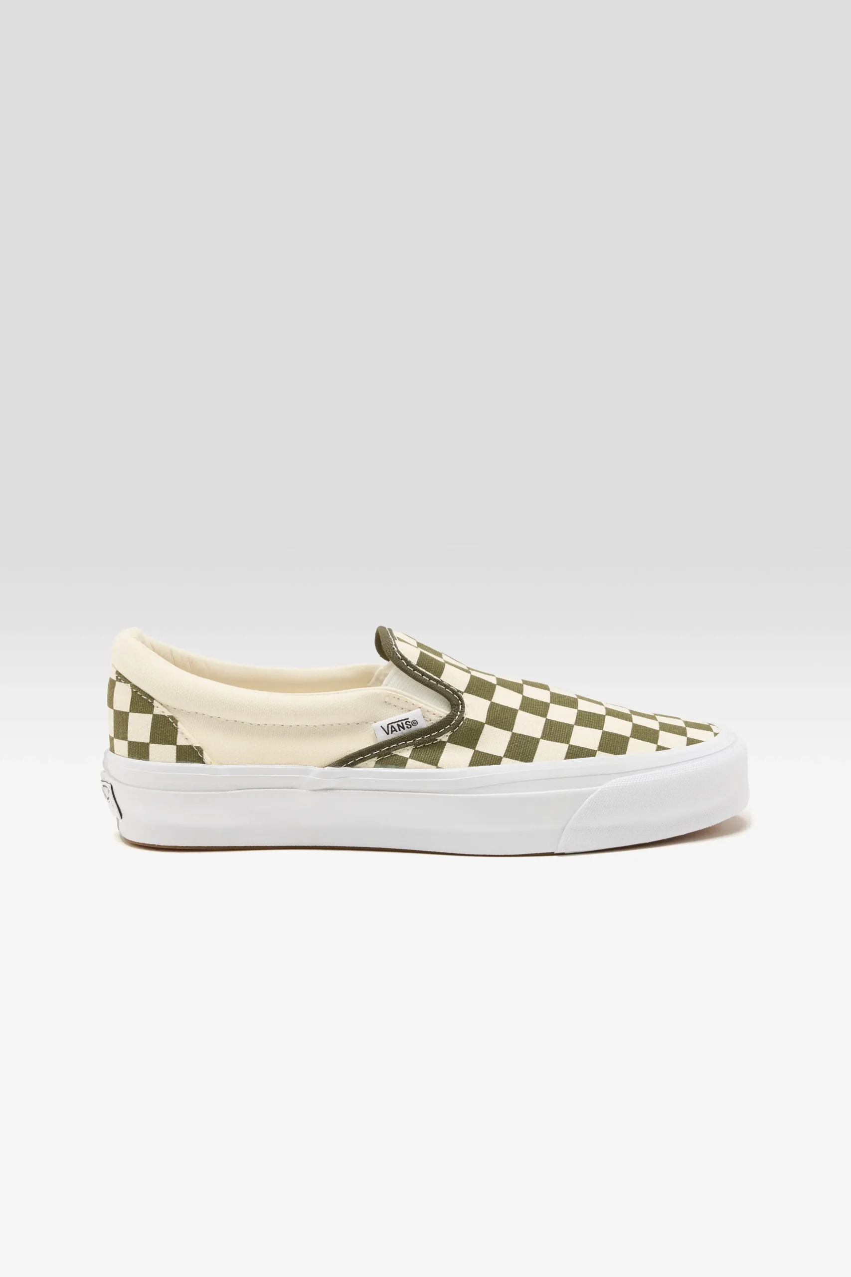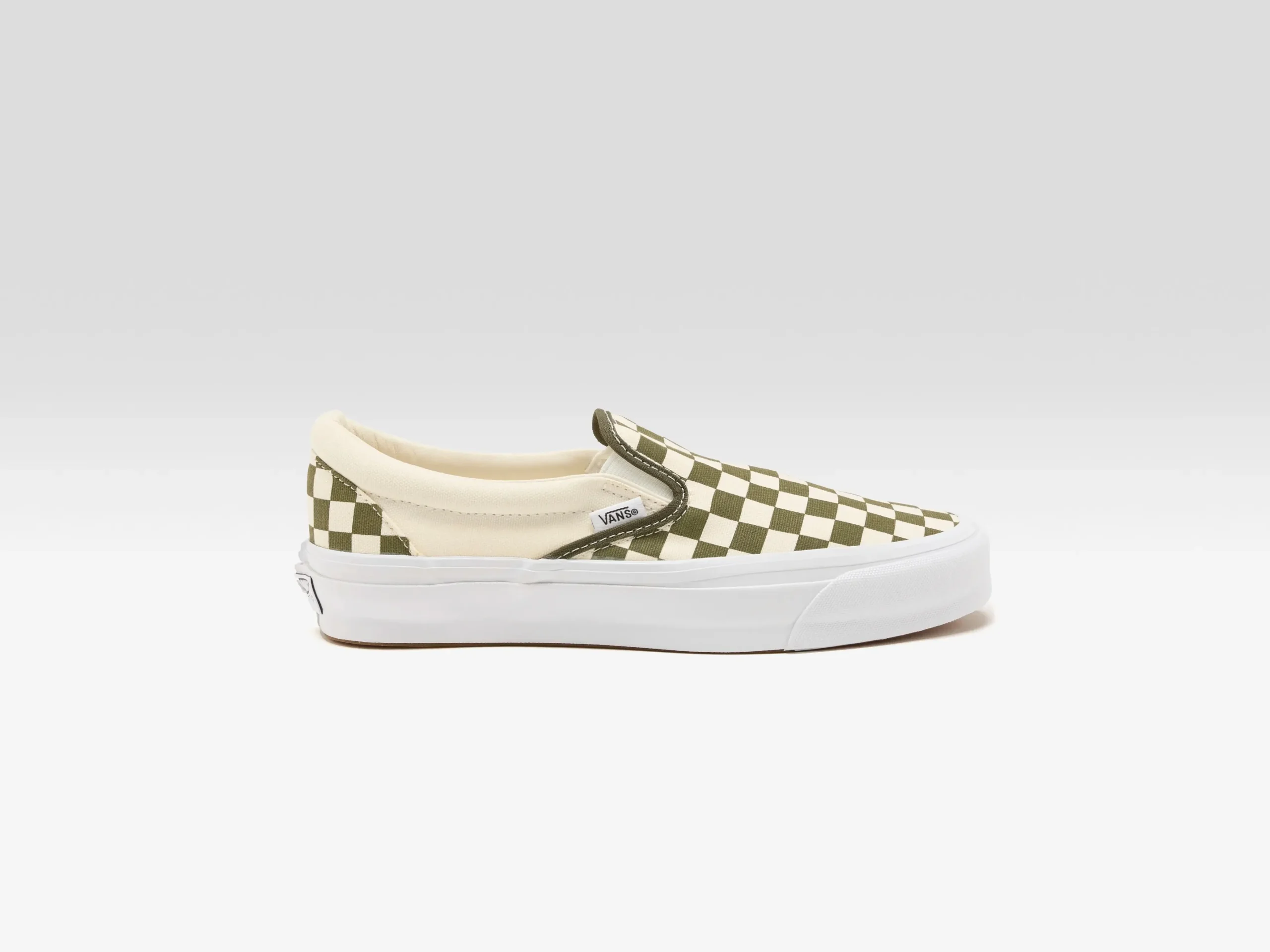 The Vans Premium Slip-on 98 shoes feature a signature checkerboard screenprint canvas upper with a full-grain leather collar lining a Sola Foam insole for all-day comfort.