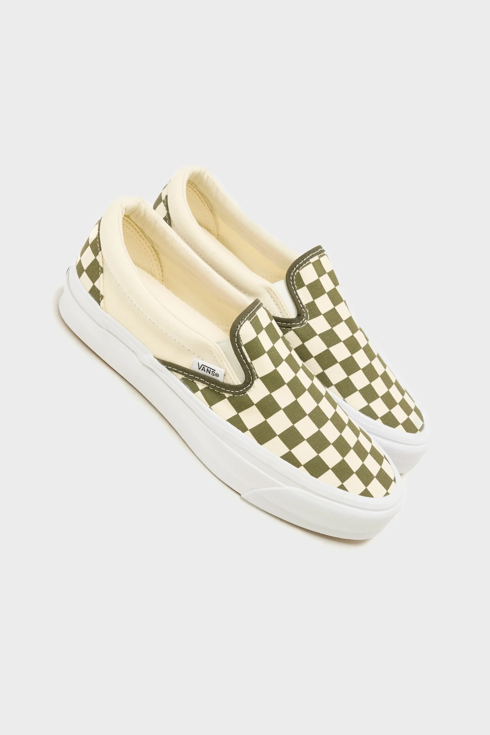The Vans Premium Slip-on 98 shoes feature a signature checkerboard screenprint canvas upper with a full-grain leather co…