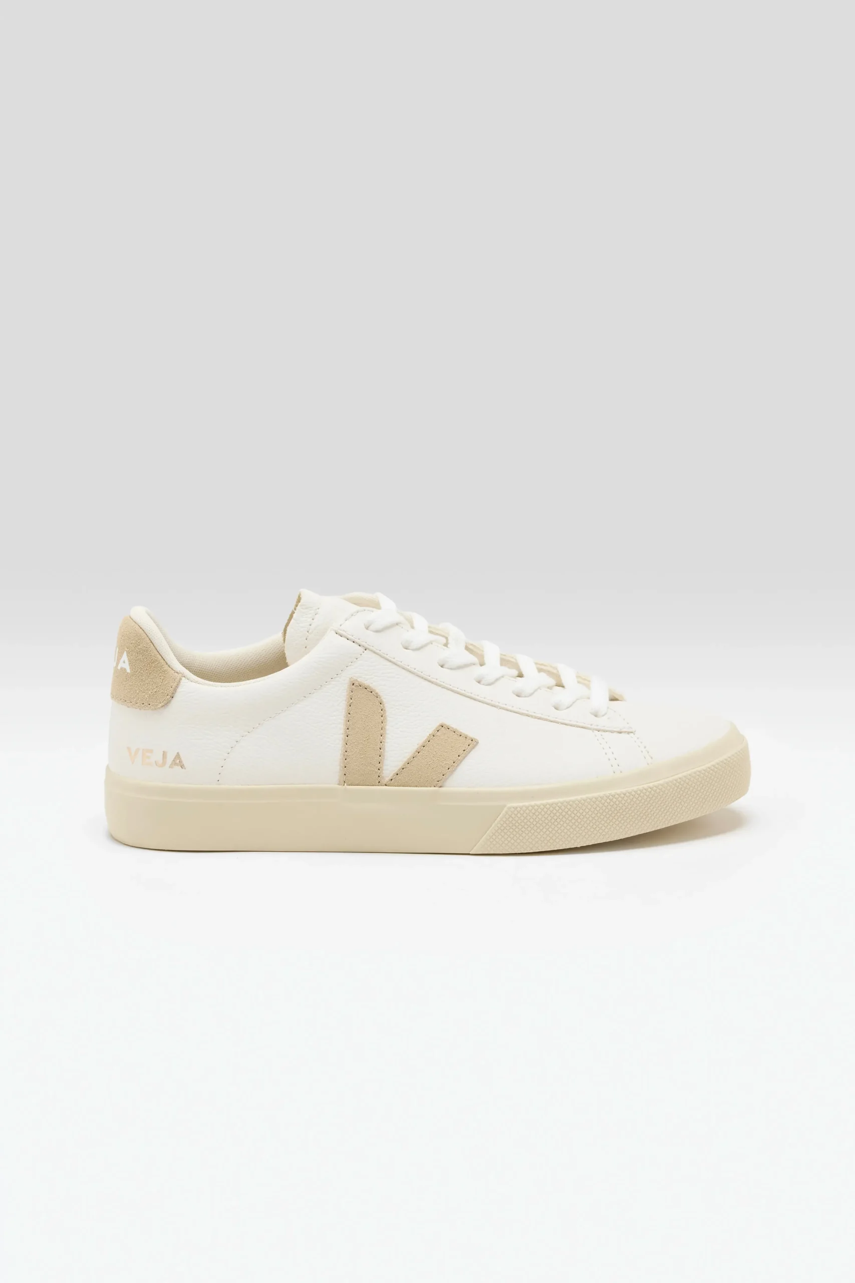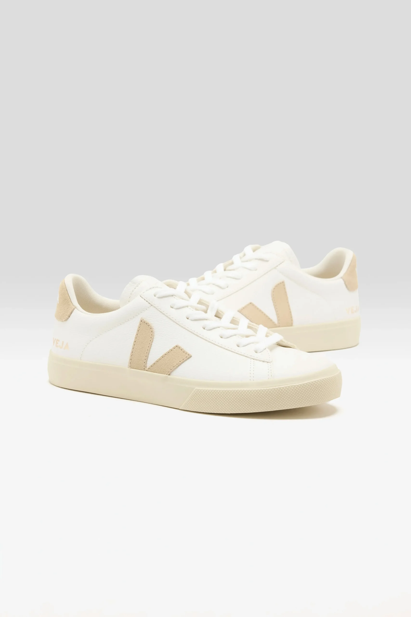 The Veja Campo sneakers feature a chromefree leather upper with a suede V logo, Amazonian rubber sole, and padded ankle collar.