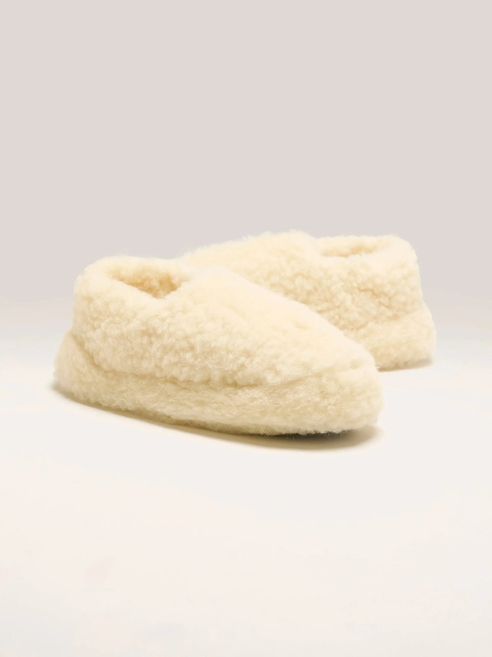 The Yoko Wool Siberian Slippers, crafted in soft wool, have non-slip outsoles.