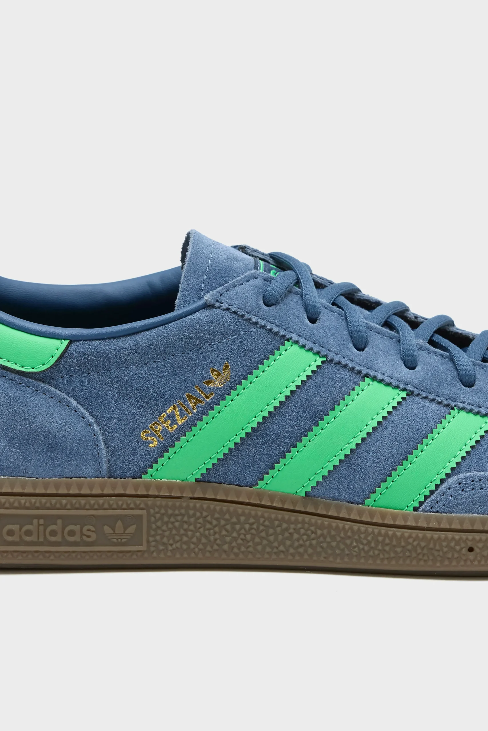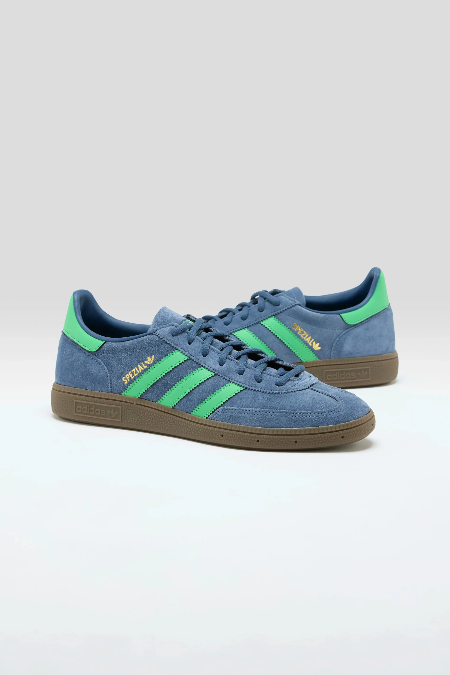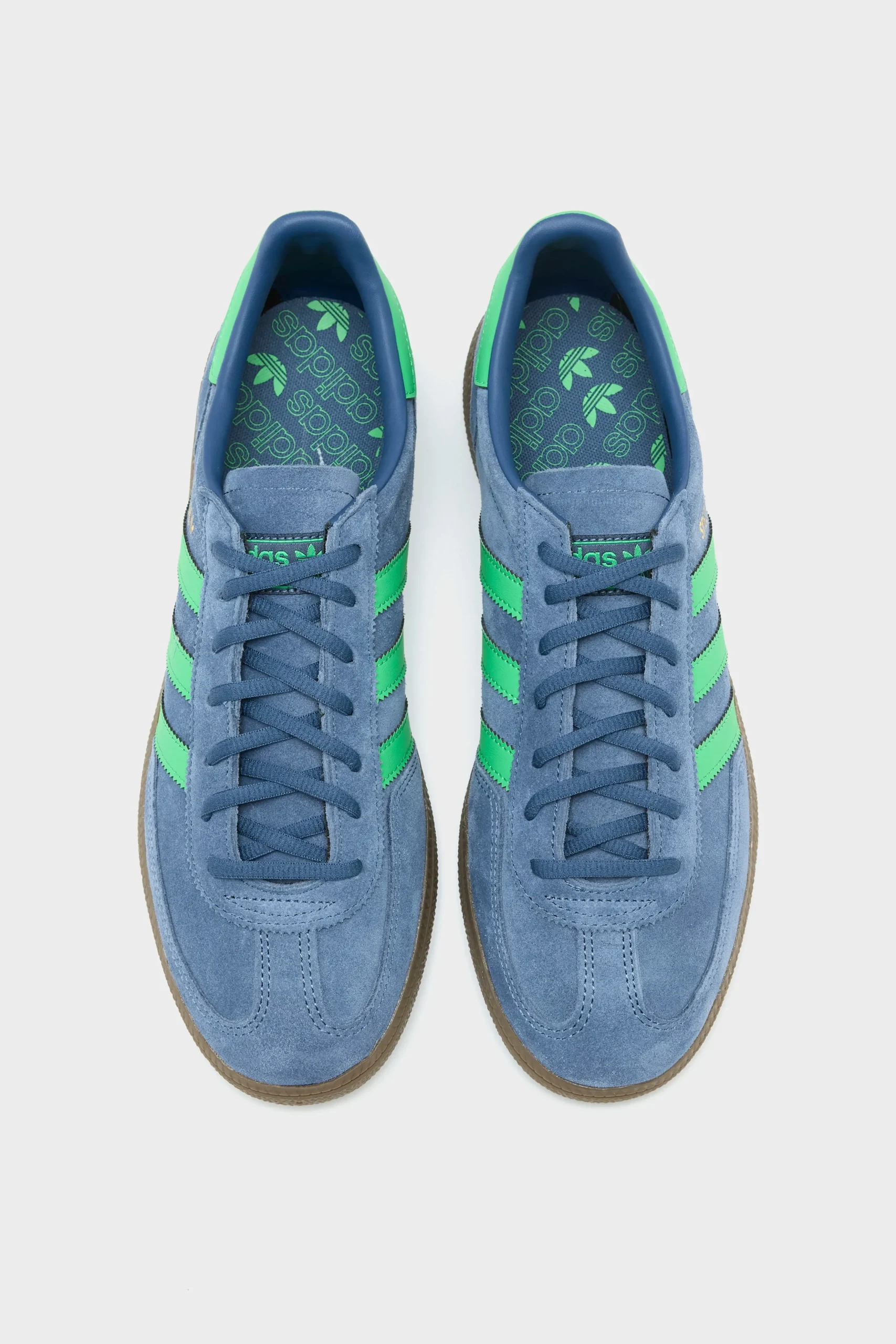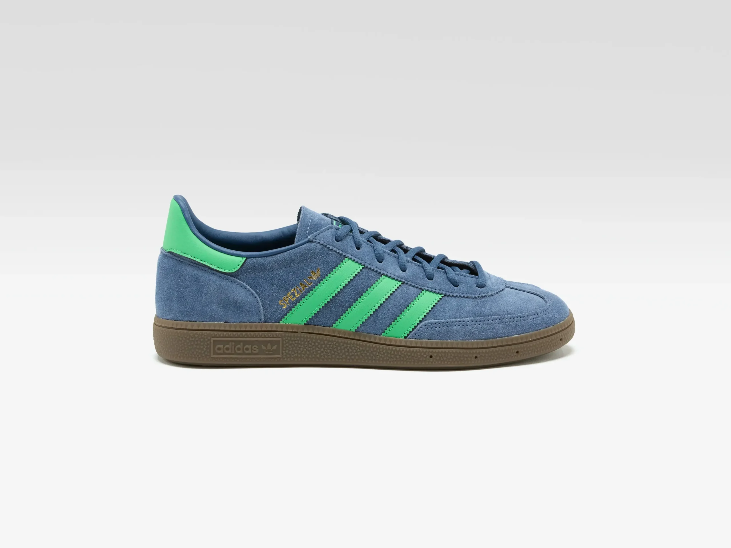 The Adidas Handball Spezial Men’s sneakers feature a suede upper, padded ankle collar, and gum rubber sole.