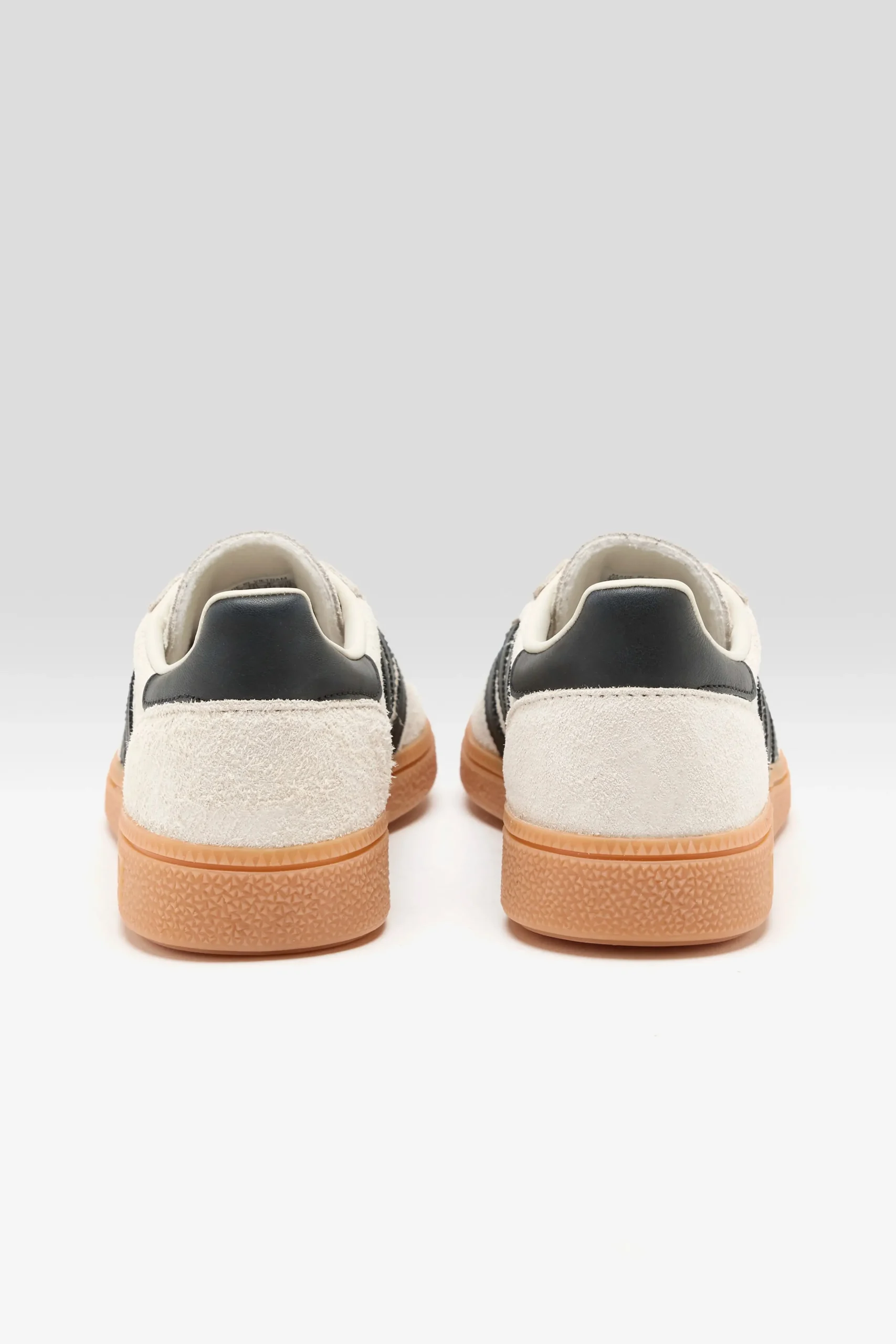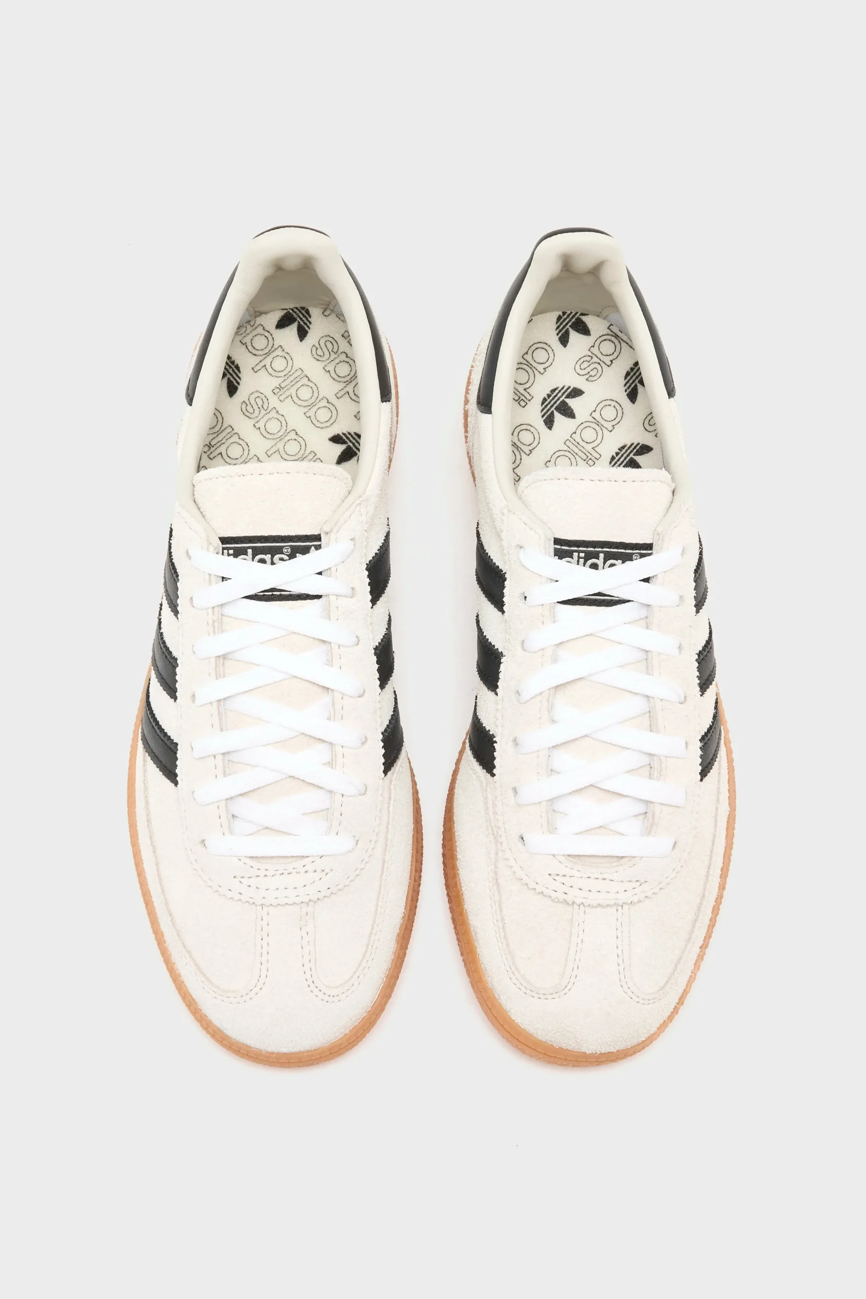 The Adidas Handball Spezial sneakers feature a suede upper, padded ankle collar, and gum rubber sole.