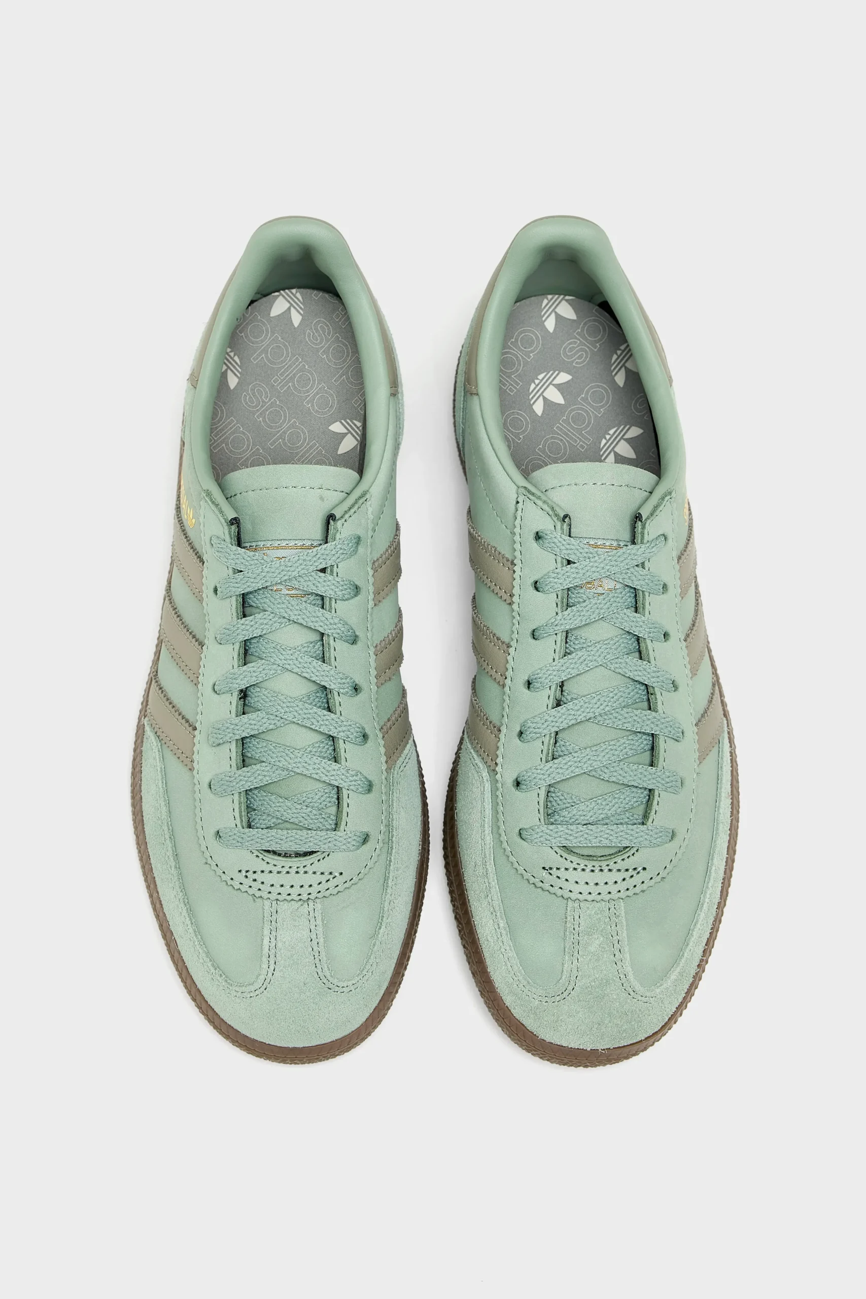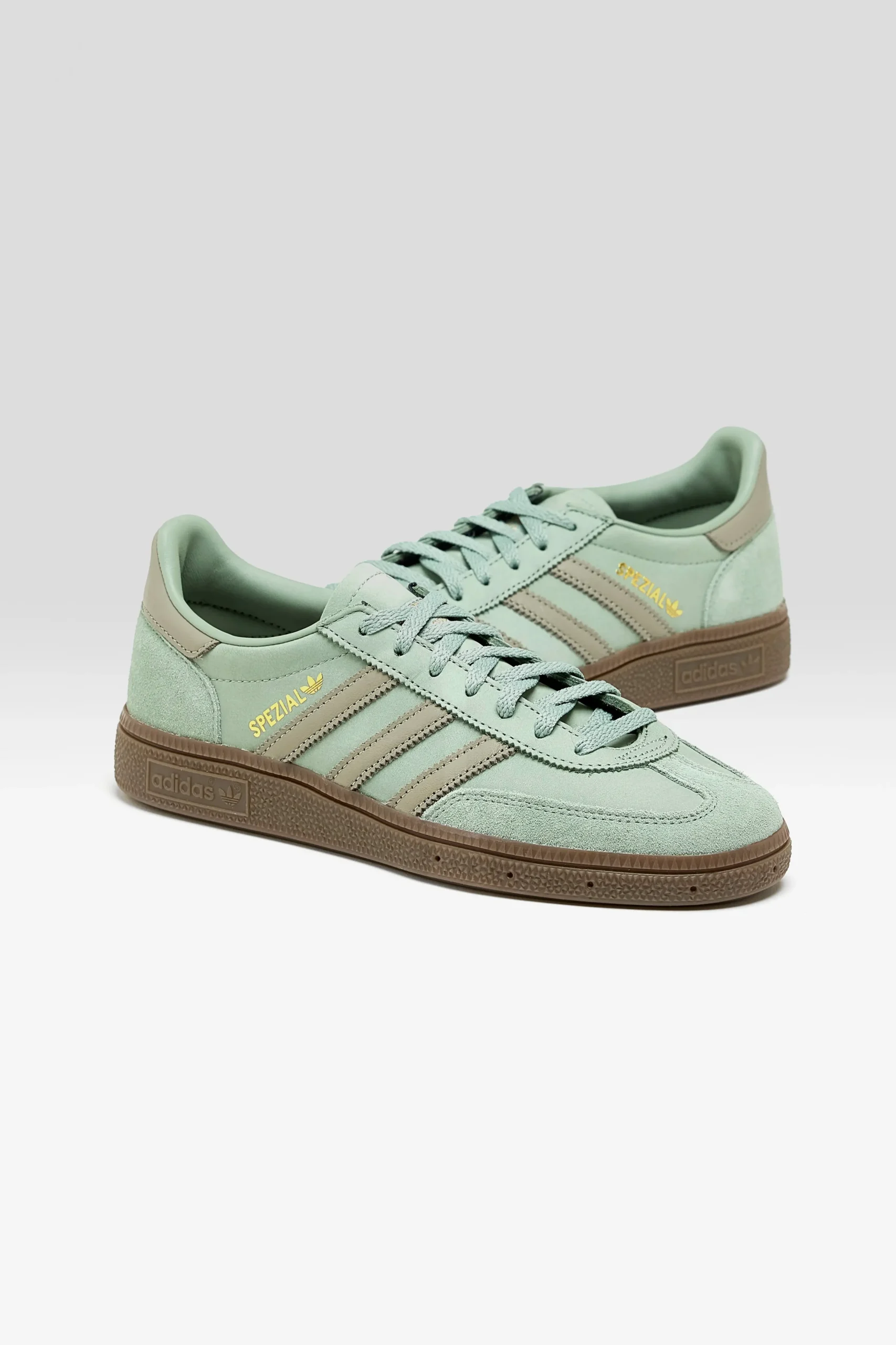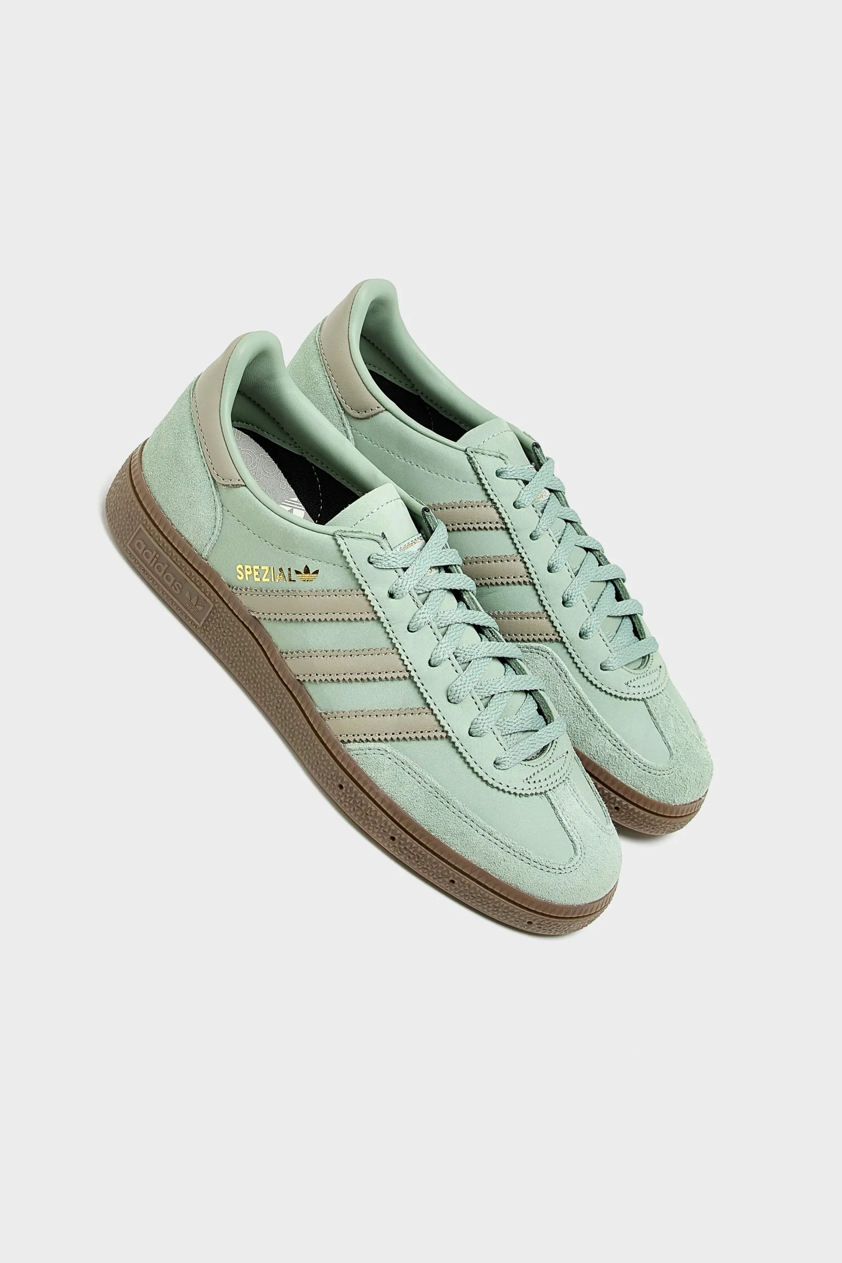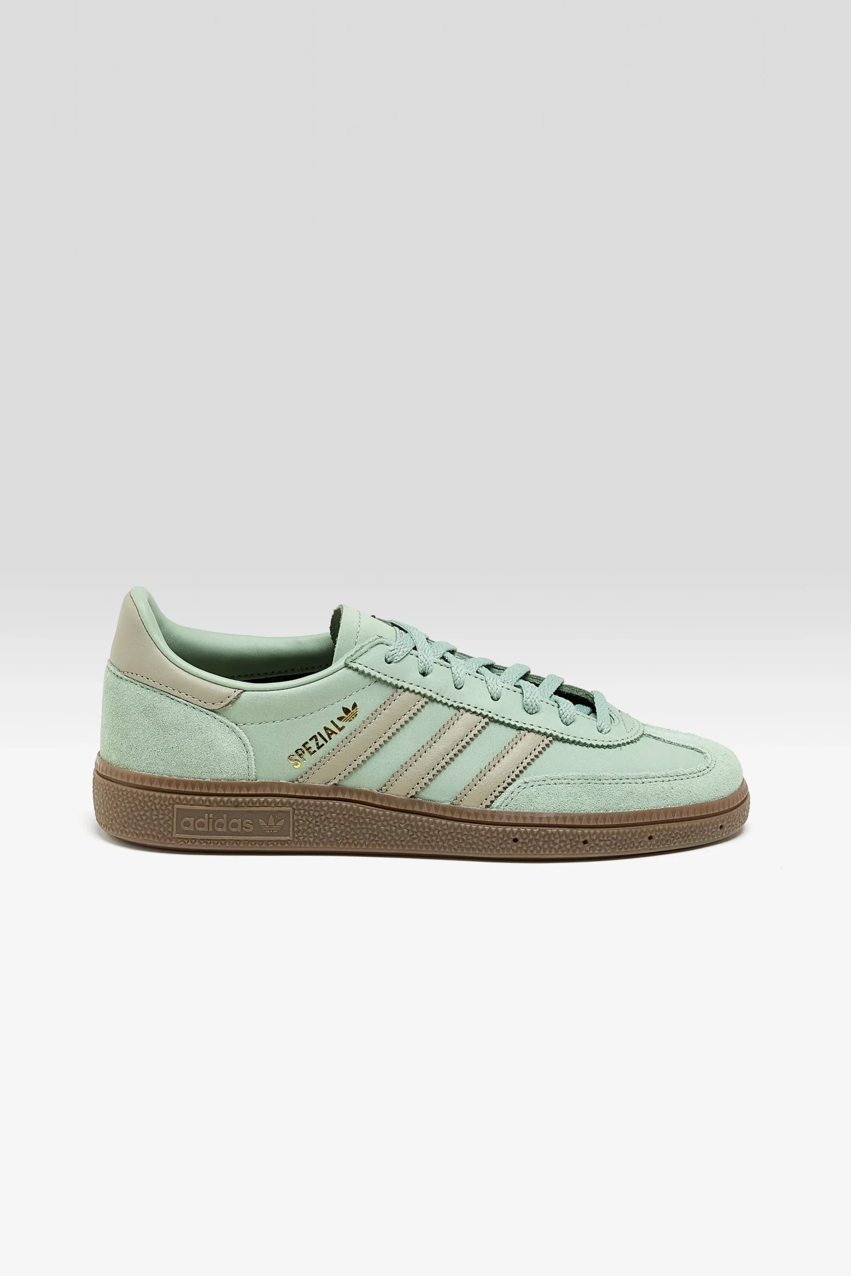 The Adidas Handball Spezial sneakers feature a smooth nubuck leather upper with a reinforced toe and leather lining.