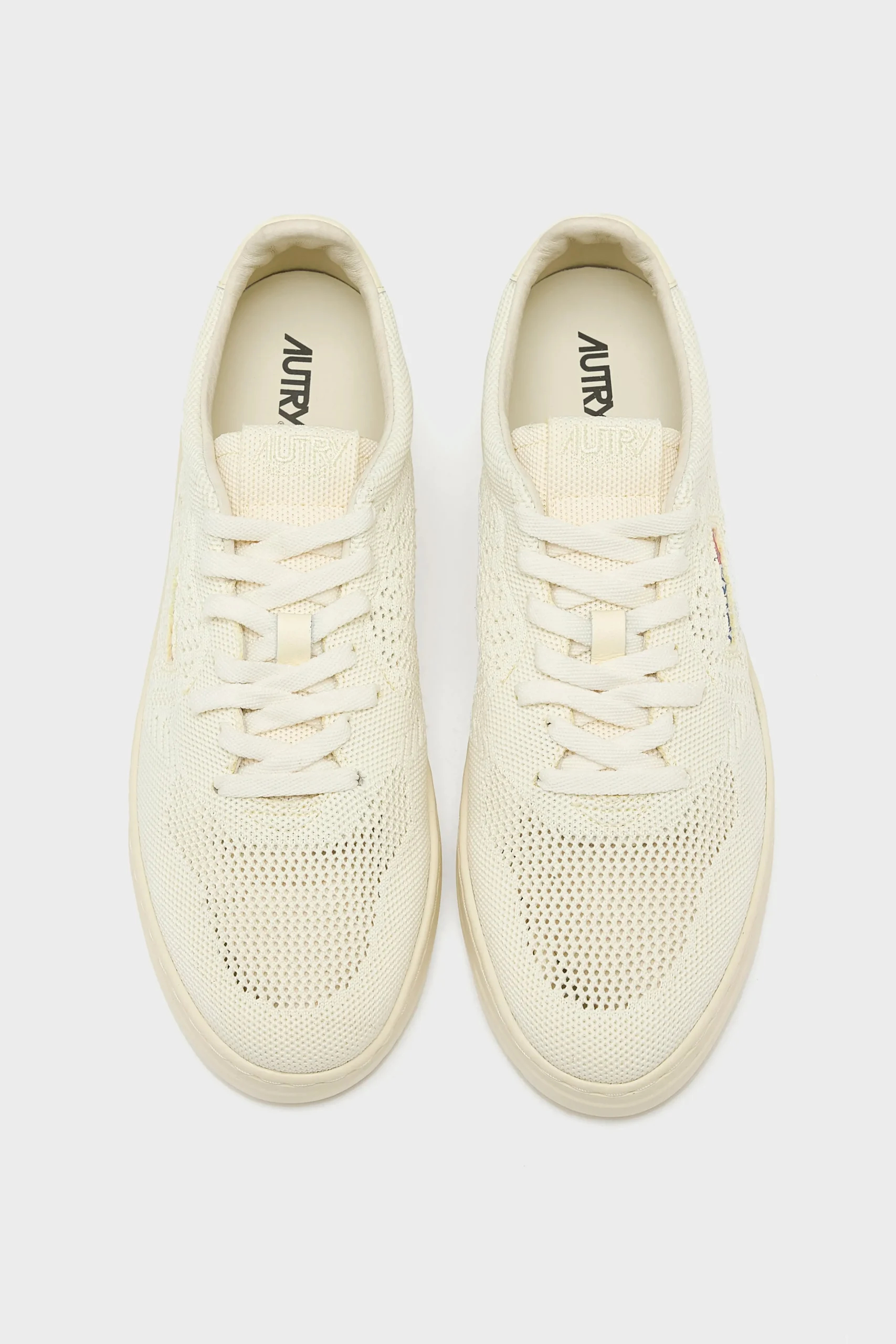 The Autry Easeknit Medalist Low sneakers have a knit textile upper with 3D textures, perforations at the toe and sides, and a lining made of leather and fabric.