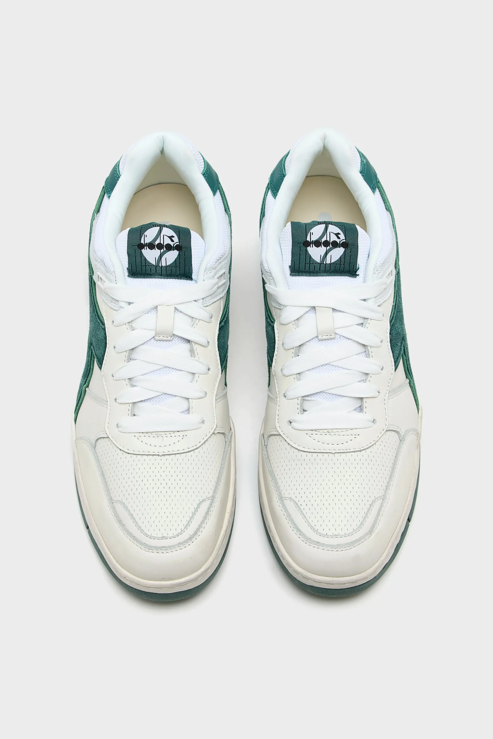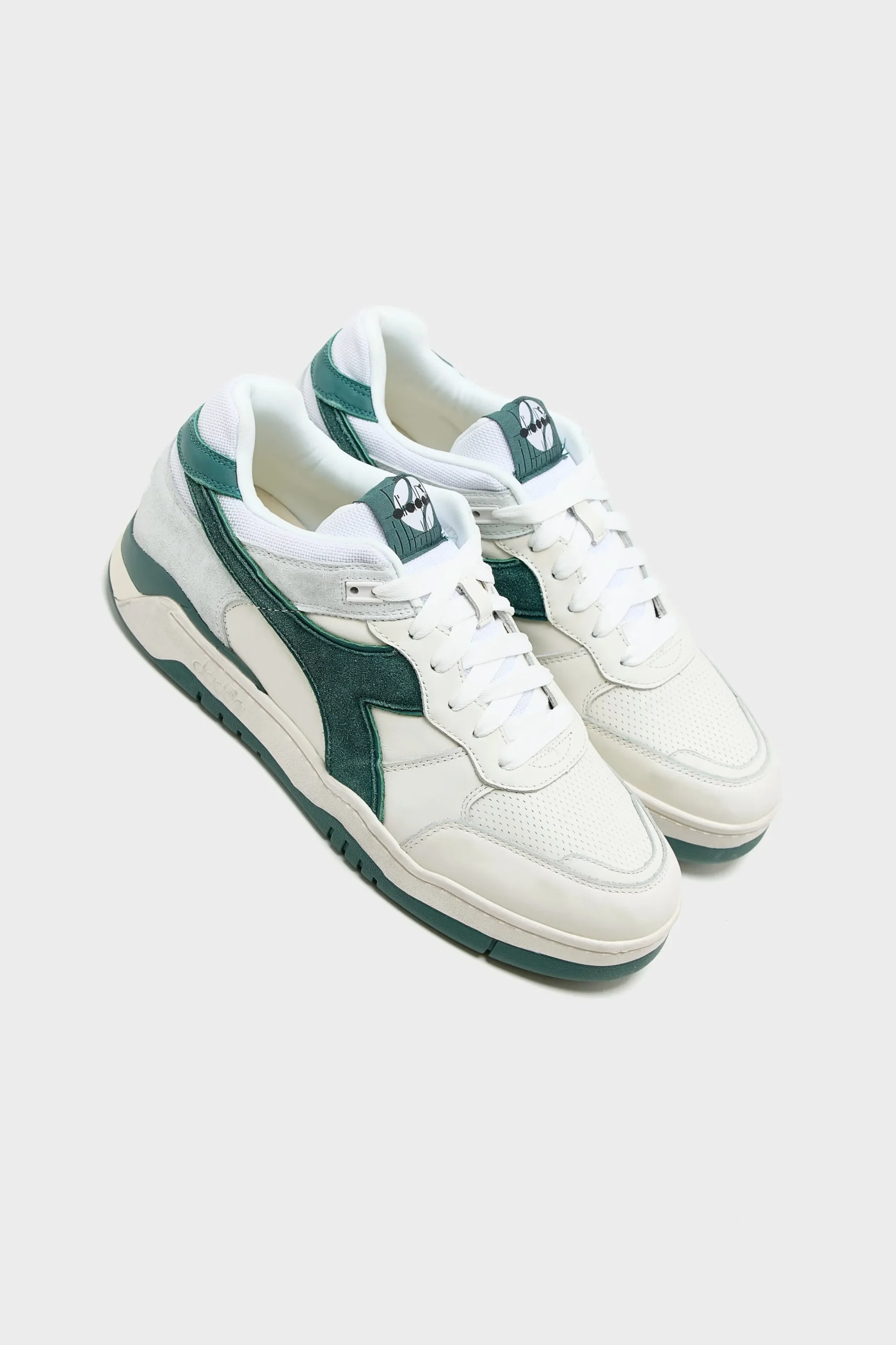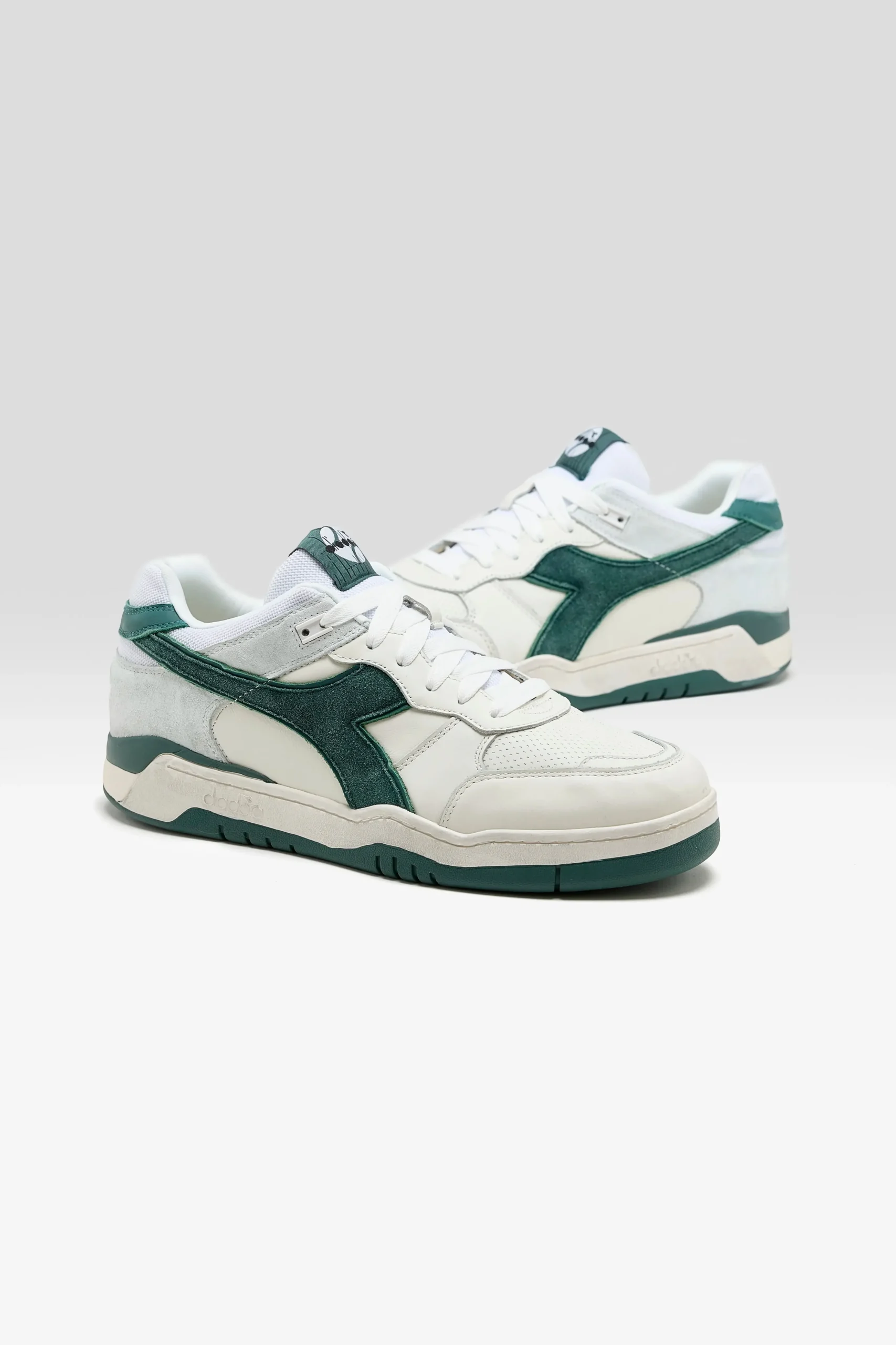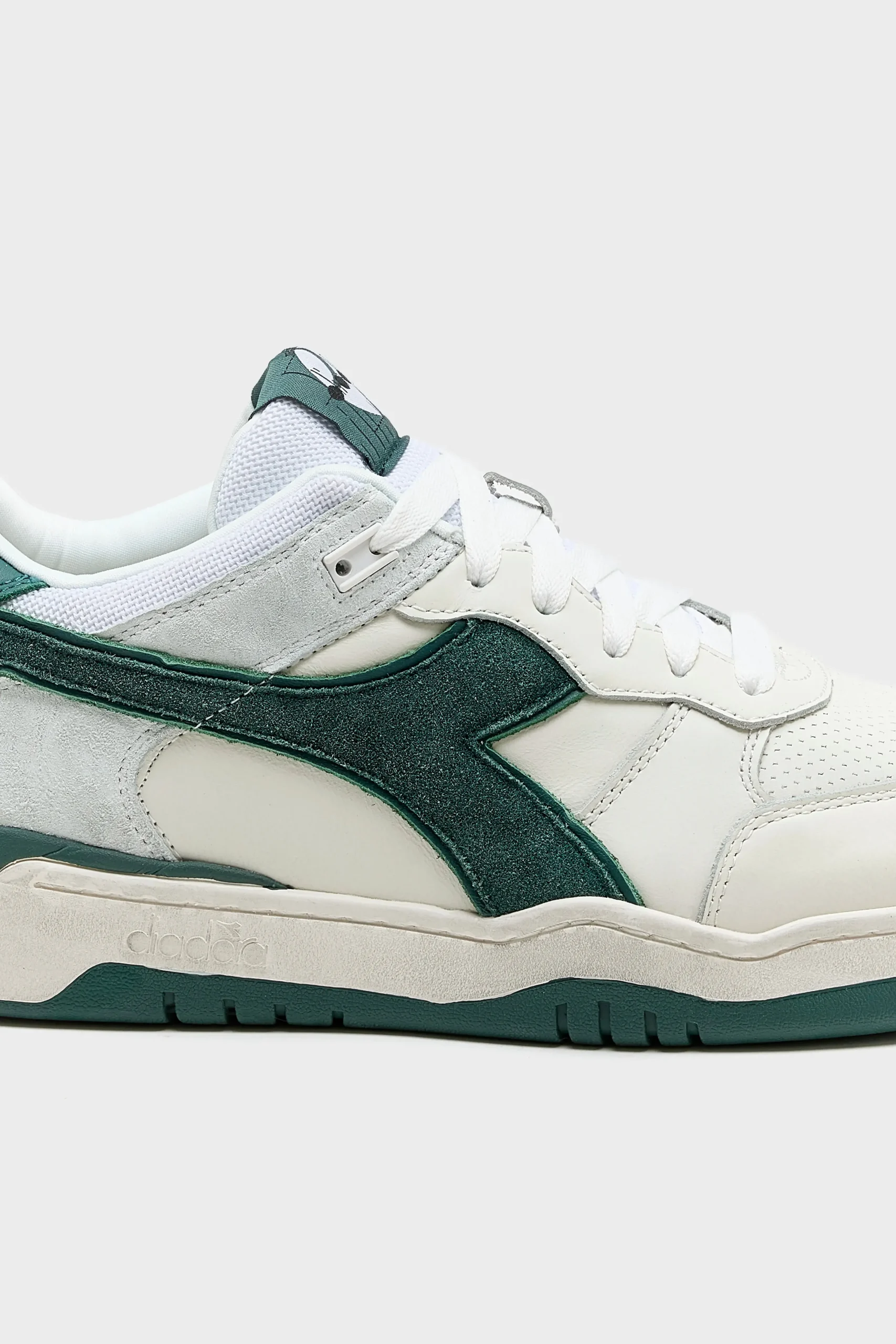 The Diadora B.560 Used heritage sneaker features a full-grain leather upper with canvas, micro-punched details, a waxed treatment, and stone-washed for a vintage effect.
