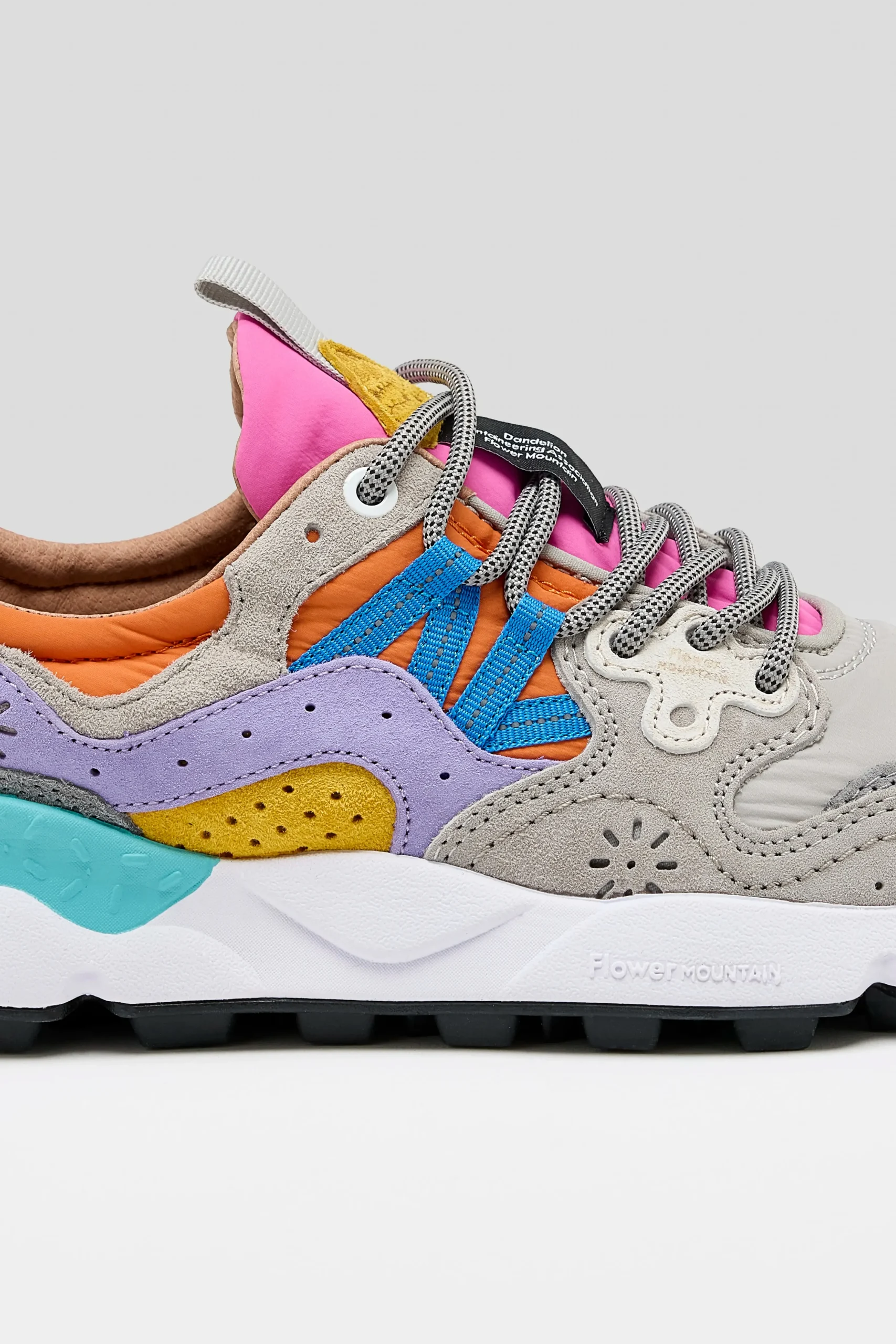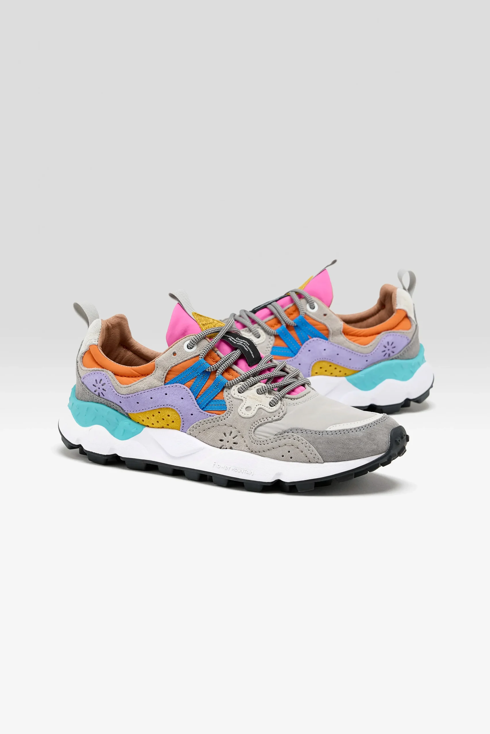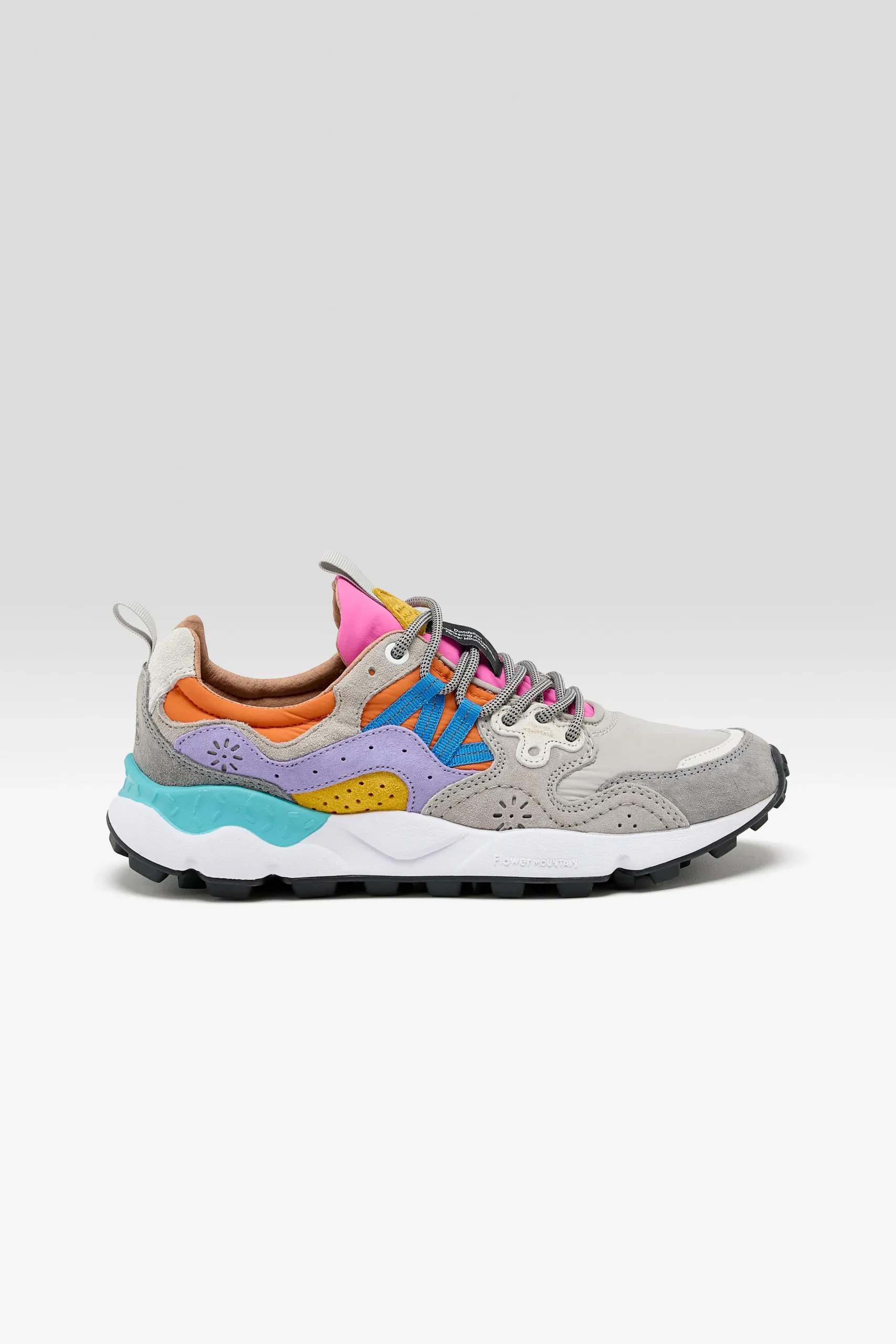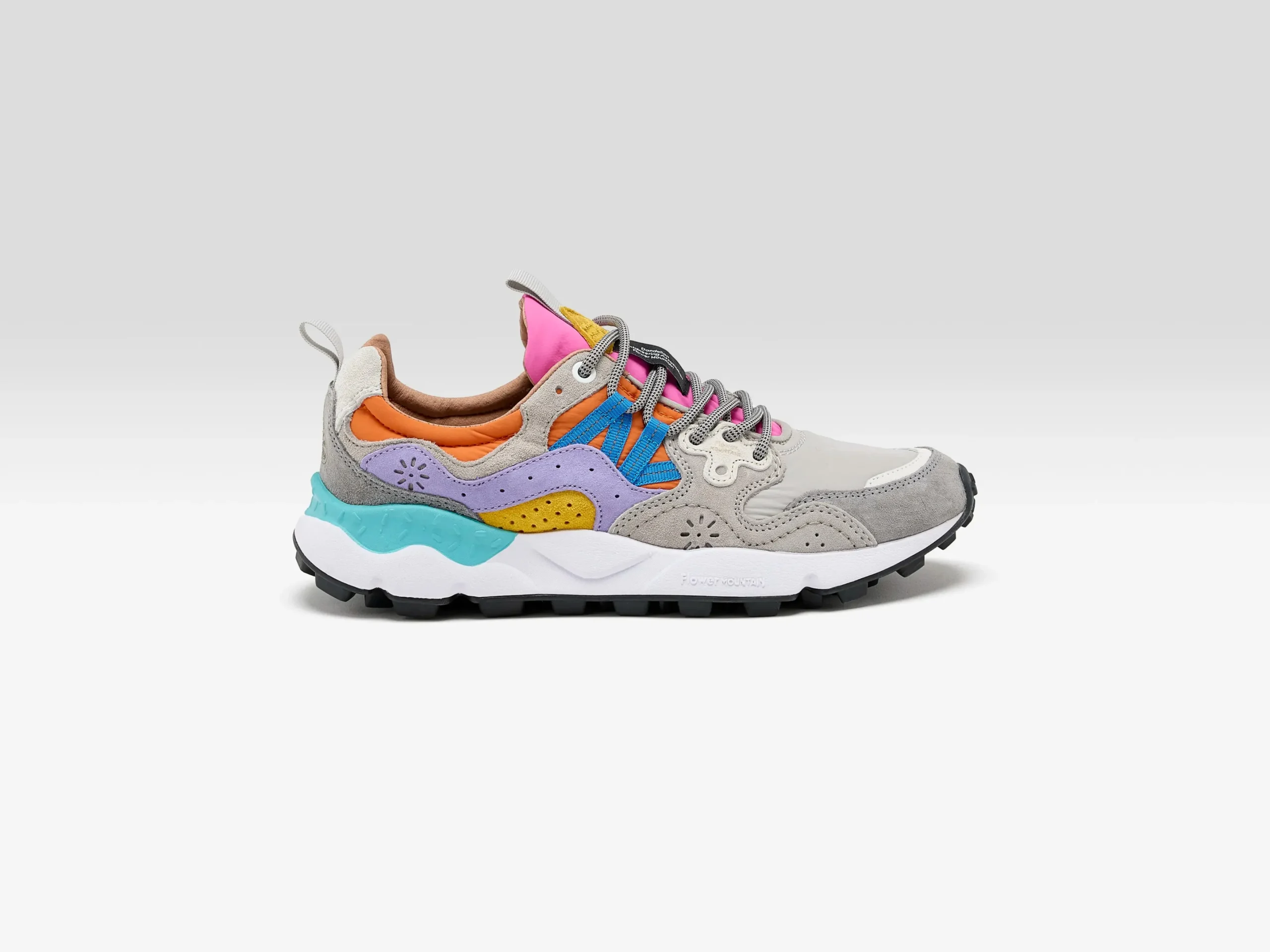 The Flower Mountain YAMANO 3 hiking shoe features a technical suede and nylon upper, hiking laces, and an ultra-lightweight rubber sole.