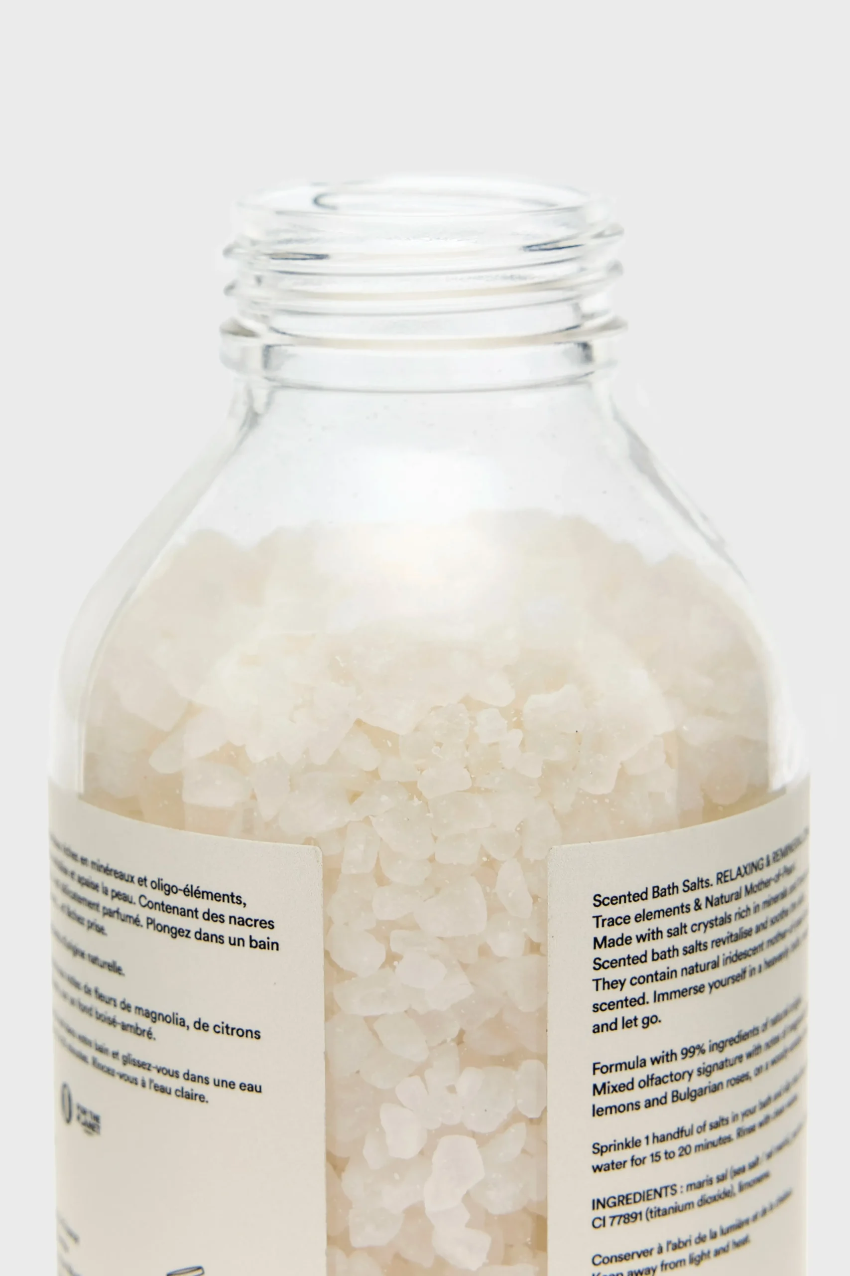 Made with salt crystals from Porto Viro in Italy, the Holidermie Perfumed Bath Salts revitalize and promote muscle and joint relaxation while slowing skin dehydration.Primary ingredients: Italian salt crystalsScent: Holidermie’s signature fragrance of magnolia, Bulgarian rose, and Italian lemons on a woody-amber background. Use: Add 2 to 3 doses (1 dose = palm full) of Salts into your bath water.Soak in the pearly, fragrant water for 15 to 20 minutes.Rinse with clear water when done.Do not consume, external use onlyStore in a cool environment away from light.Use within twelve months after openingMaterials: Glass jar with lid