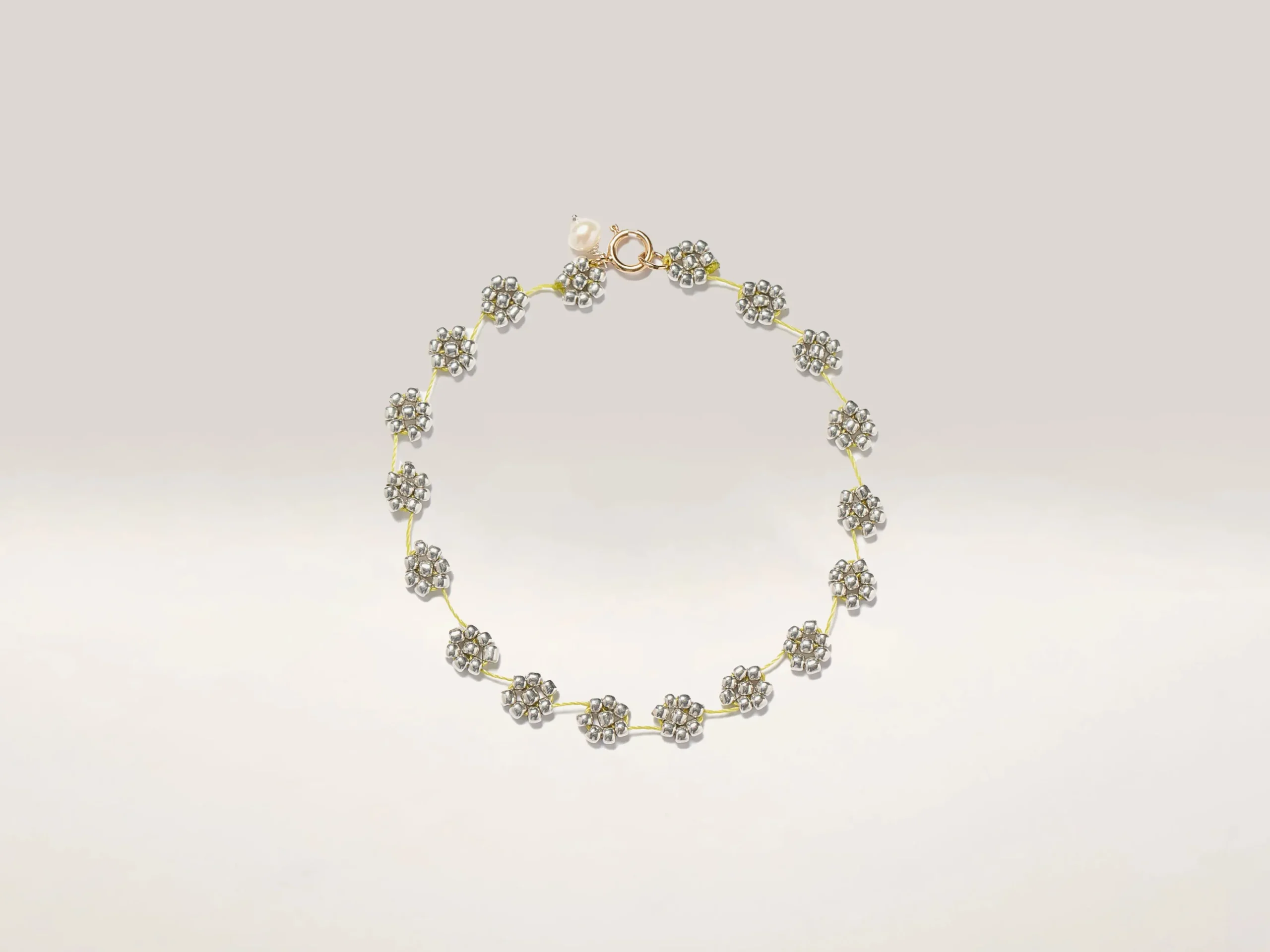 Sweet, soft, and light, this durable beaded flower necklace is a nostalgic piece that will be an heirloom to treasure. The Fiori collection is Labro’s first and best-selling design made from glass beads and strong nylon thread.
