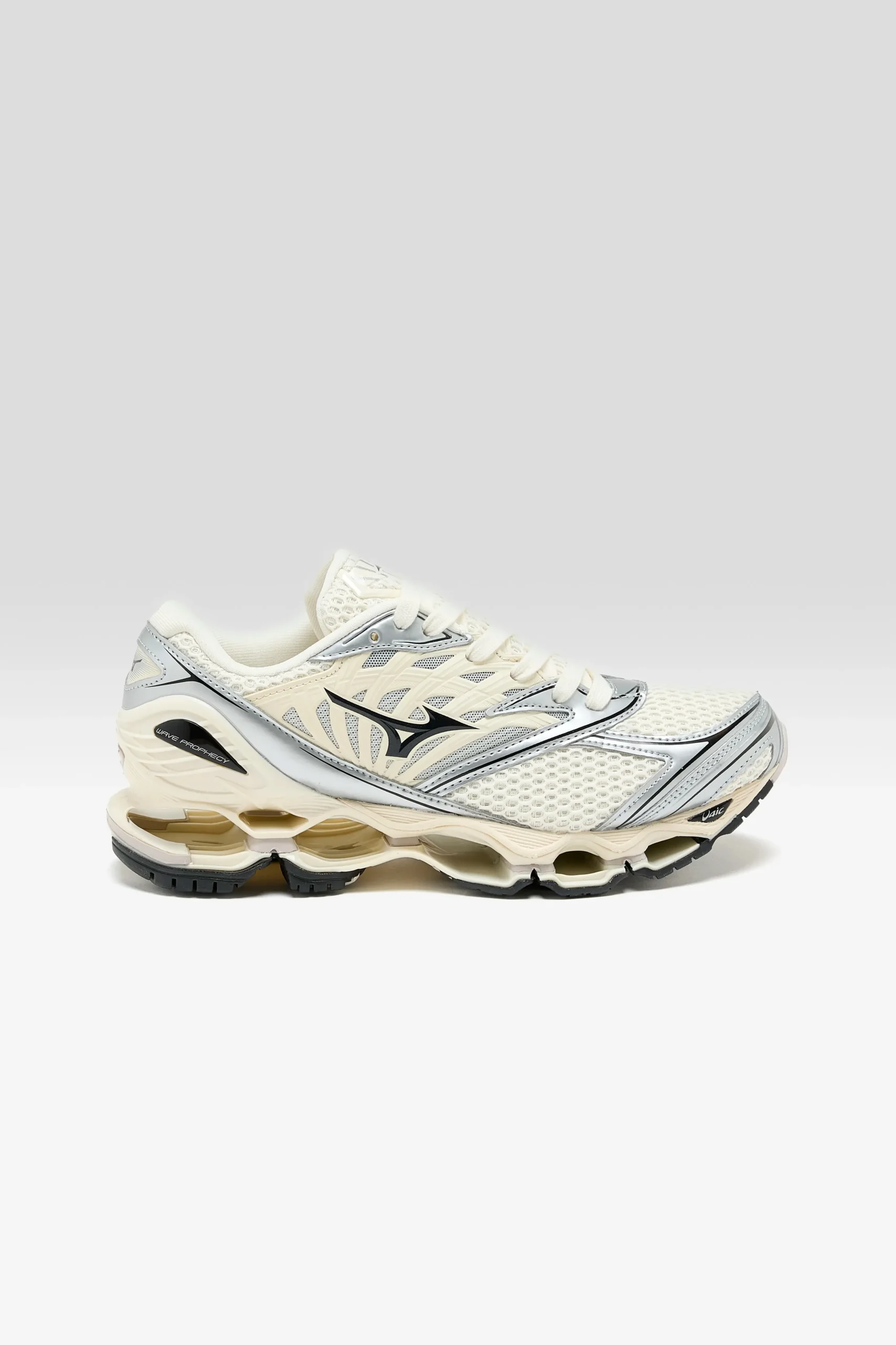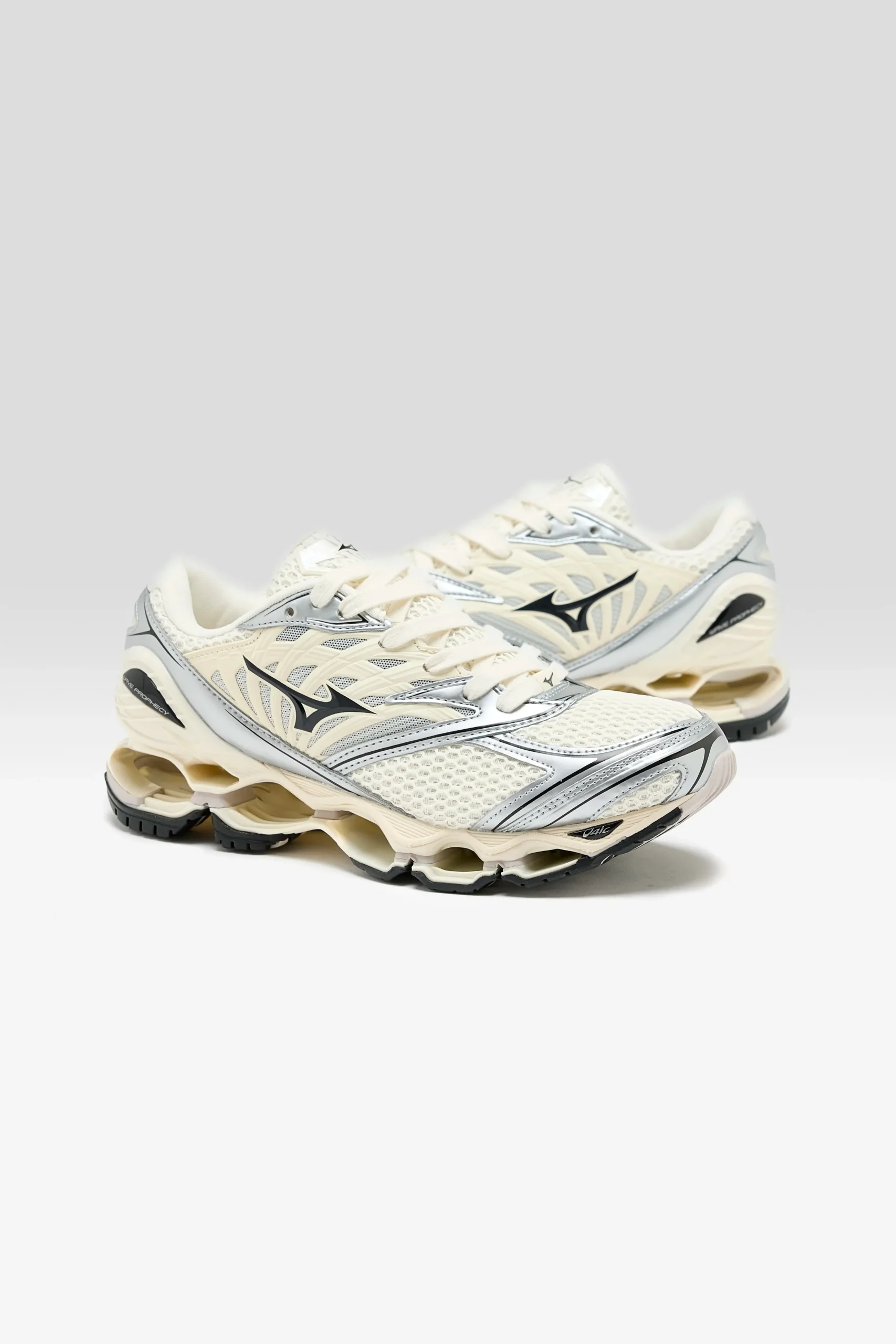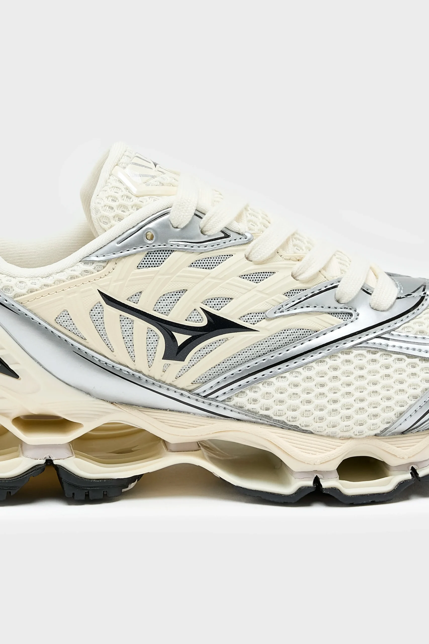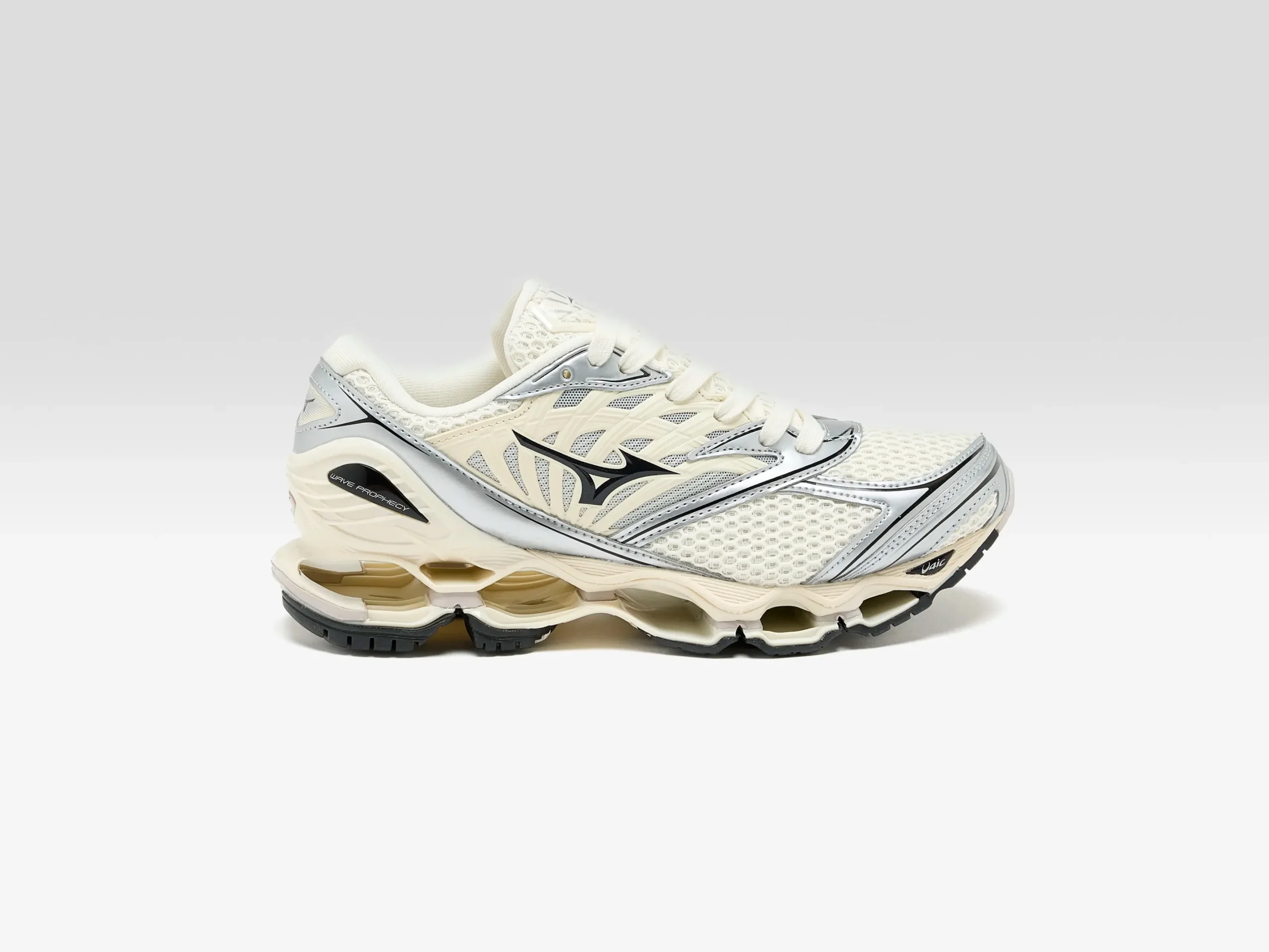 The Mizuno Y2K-inspired Wave Prophecy LS Sportstyle sneaker features an open mesh ripstop upper with synthetic leather overlays, reflective details, and Mizuno’s Infinity Wave midsole.