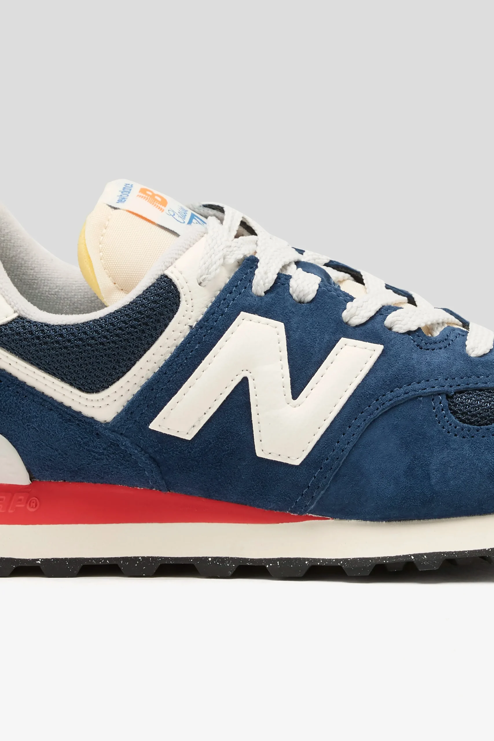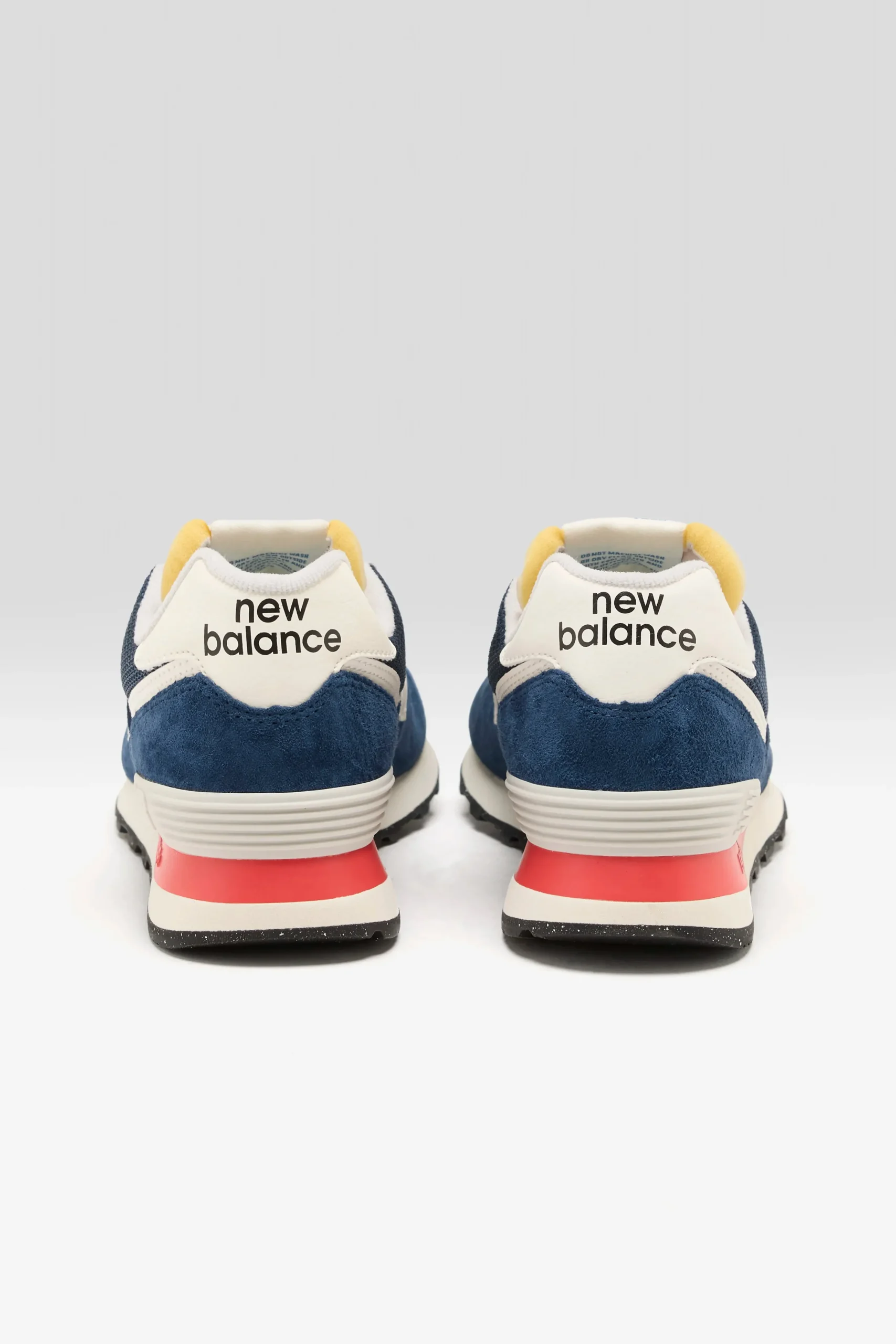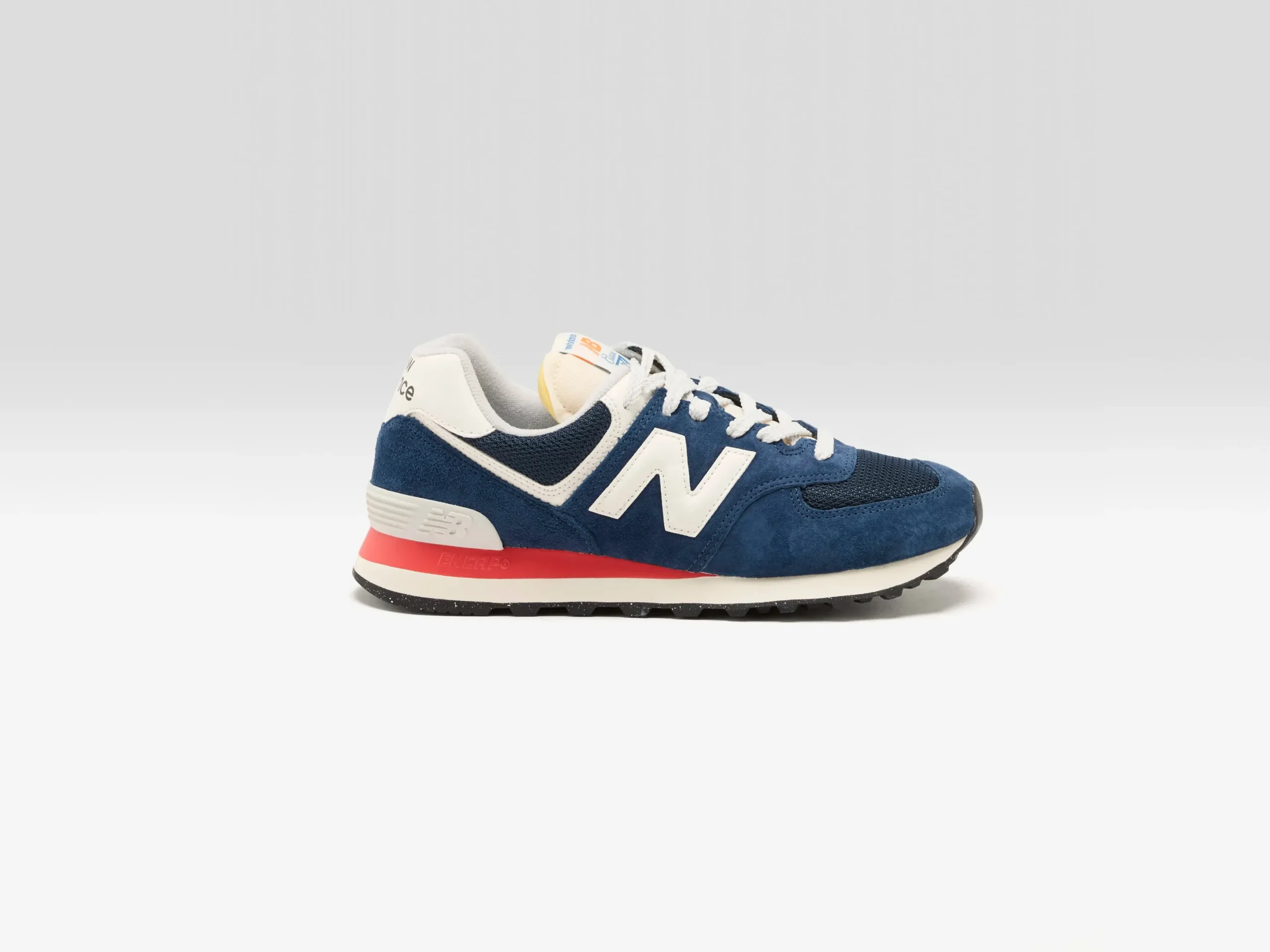 The New Balance 574 sneakers combine a suede upper with mesh underlays on a wide racing sole.