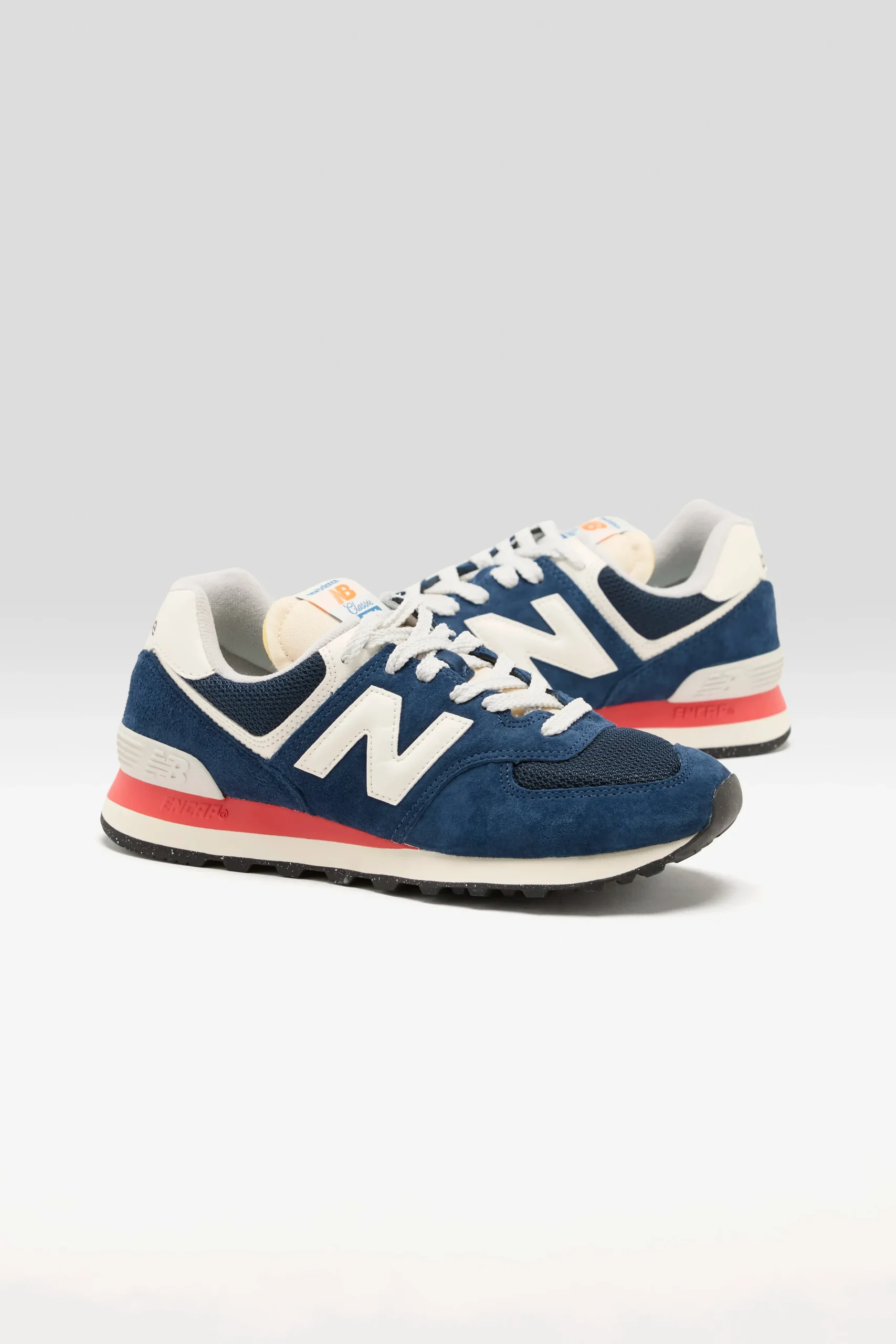 The New Balance 574 sneakers combine a suede upper with mesh underlays on a wide racing sole.Unisex sizing: For a tight …