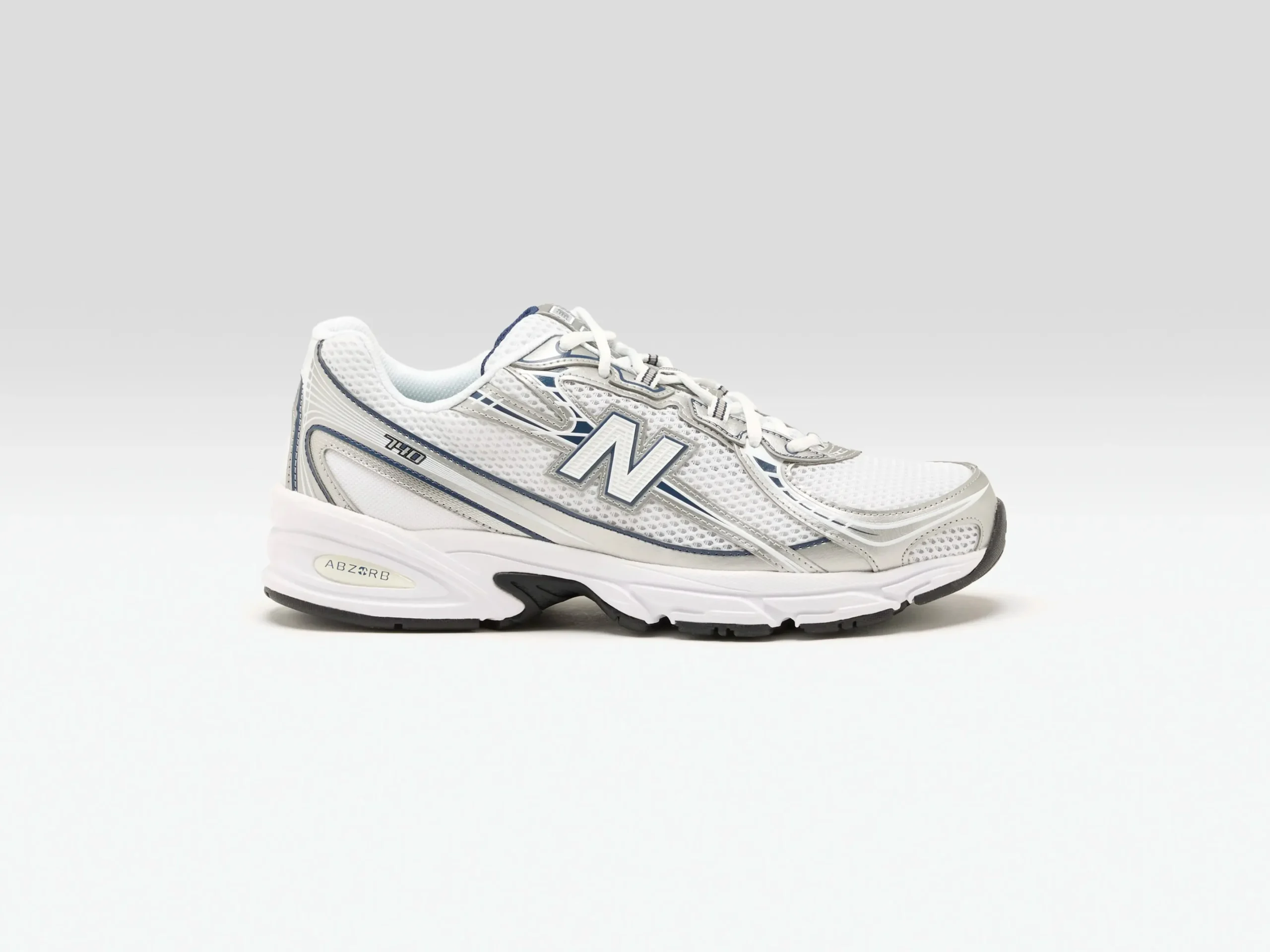 The New Balance 740 running sneaker features a breathable mesh upper with synthetic overlays, a segmented midsole, and a sleek silhouette.