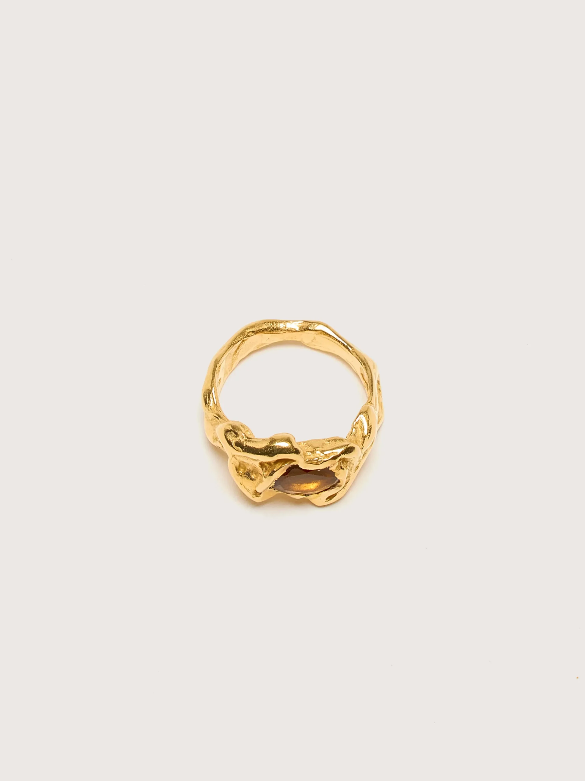 De Simuero Ola Gold ring heeft een gedurfd ontwerp handgemaakt in gerecycleerd 925 sterling zilver met een Citrien steen.Elk stuk is handgemaakt en heeft een unieke afwerking.Gewicht: 6 gStijl: OlaKleur: Goud