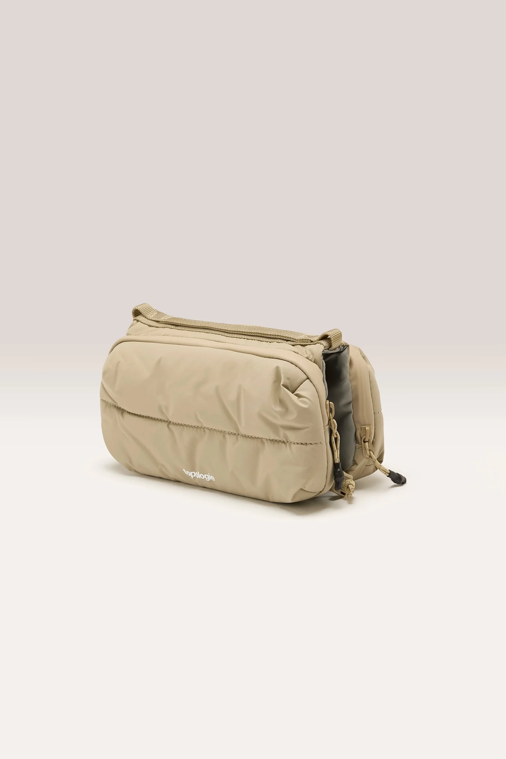 The Topologie Bottle Sacoch in black puffy nylon is a versatile daily sling bag with enhanced storage. Each element is sold separately, allowing you to mix and match bags, phone cases, and straps.