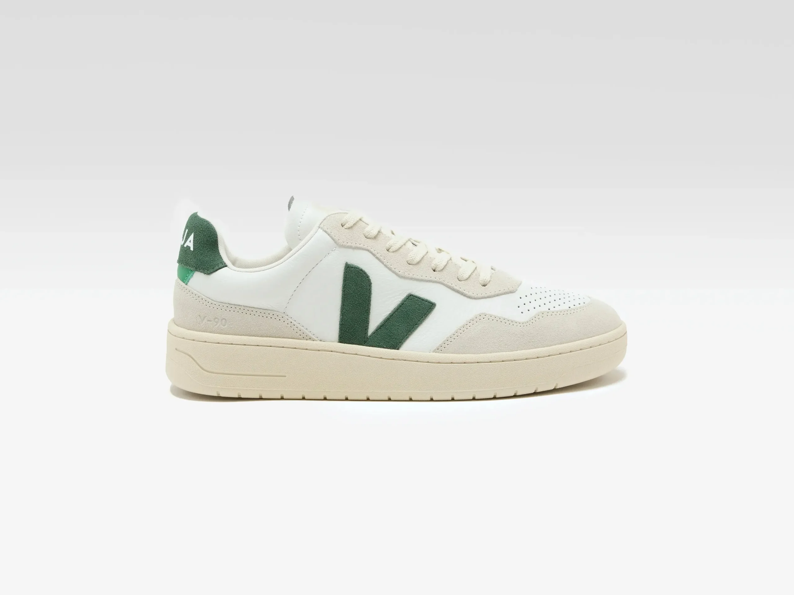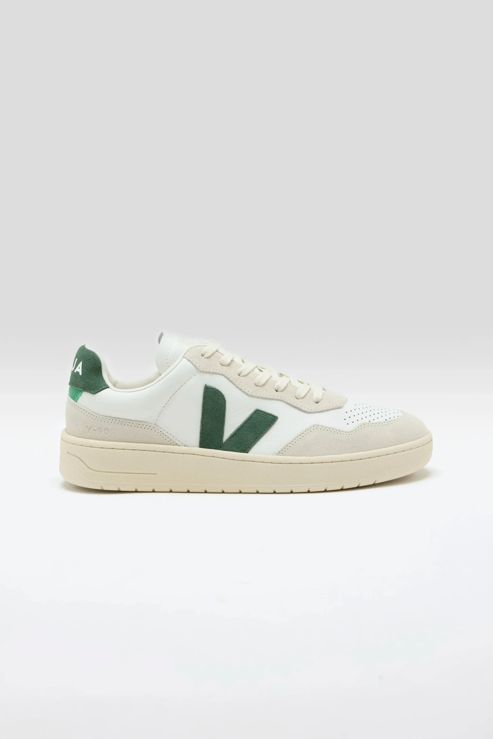 De Veja V-90 sneakers hebben een bovenwerk van Organic Traiced leder met iconische rubberen zolen uit Amazonië en milie…